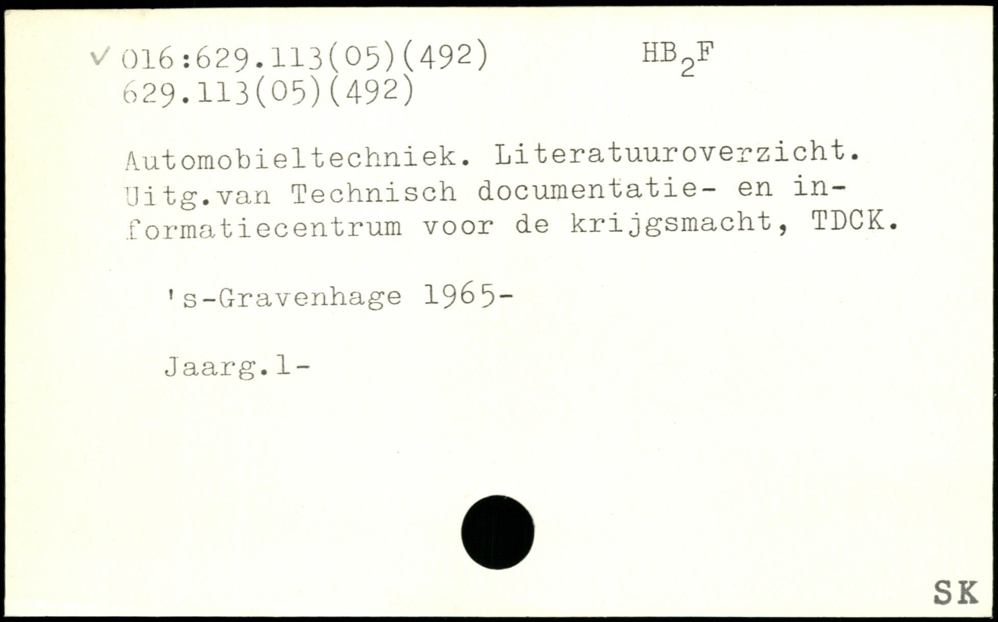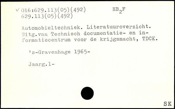 Automobieltechniek. Literatuuroverzioht. Uiig.van Technisch. docniueniaiie — en in— formatiecentrum voor de krijgsmacht, TDCK. 's-Gravenhage 1965- Jaarg.1-
