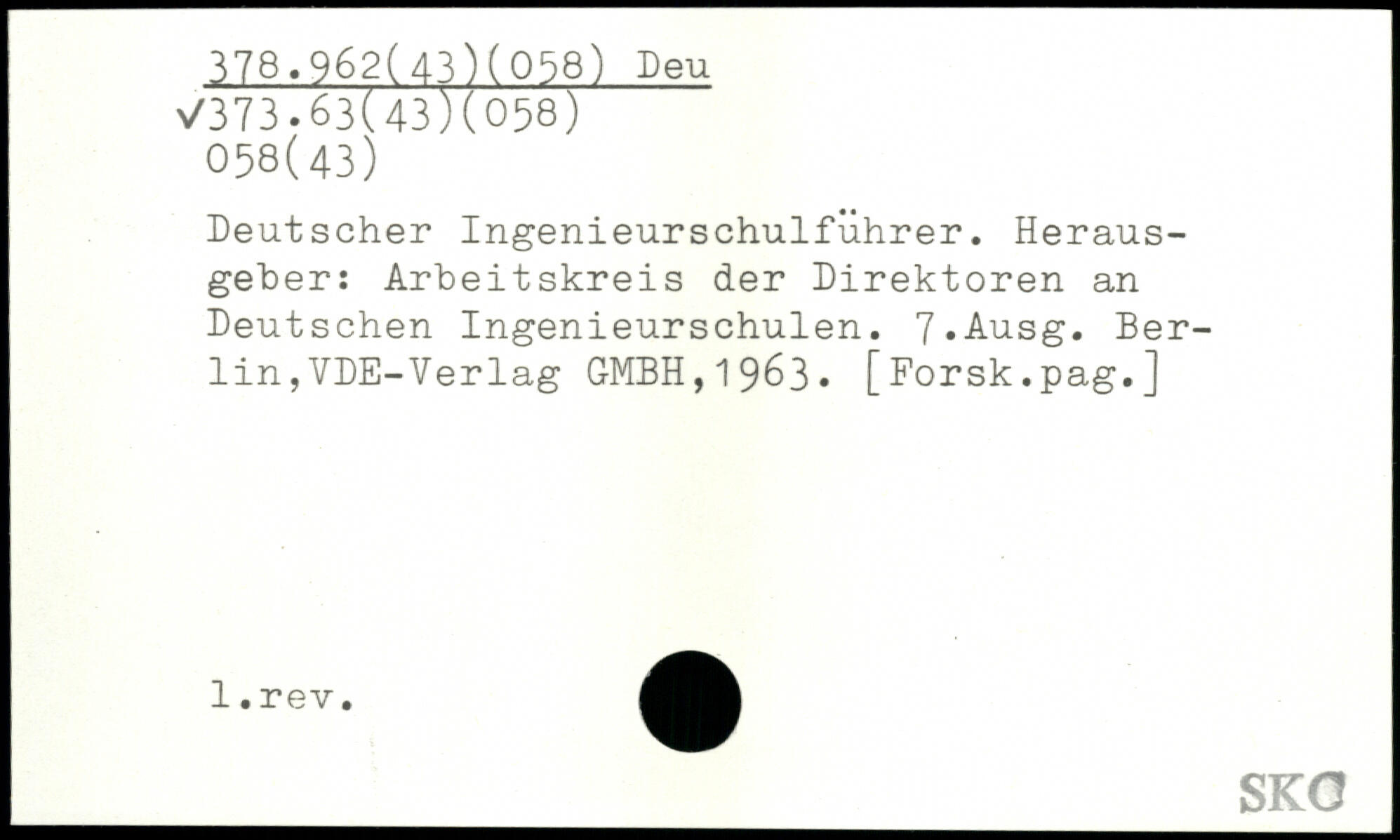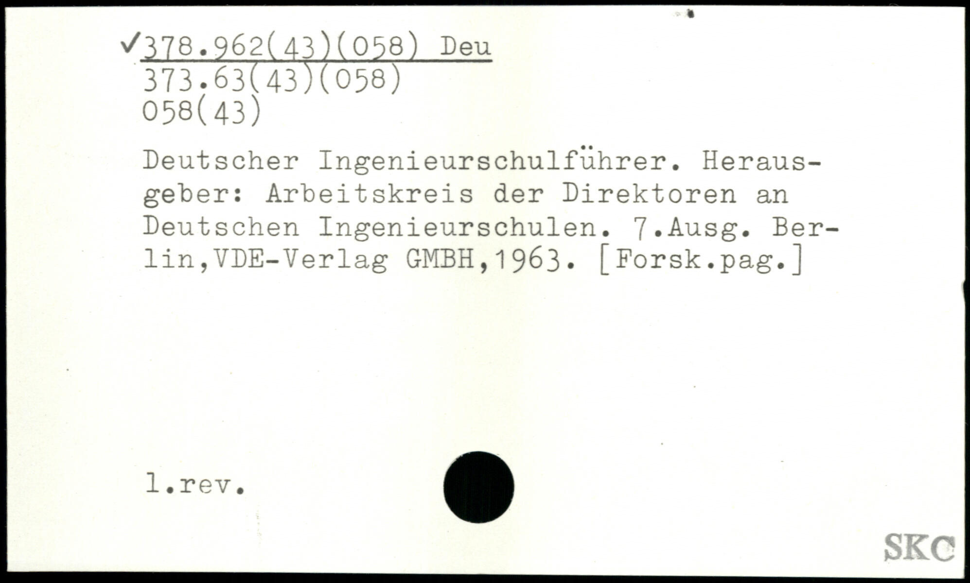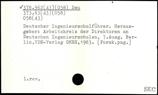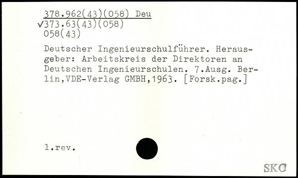 Deutscher Ingenieurschulführer. Herausgeber: Arbeitskreis der Direktoren an Deutschen Ingenieurschulen. 7,Ausg.
