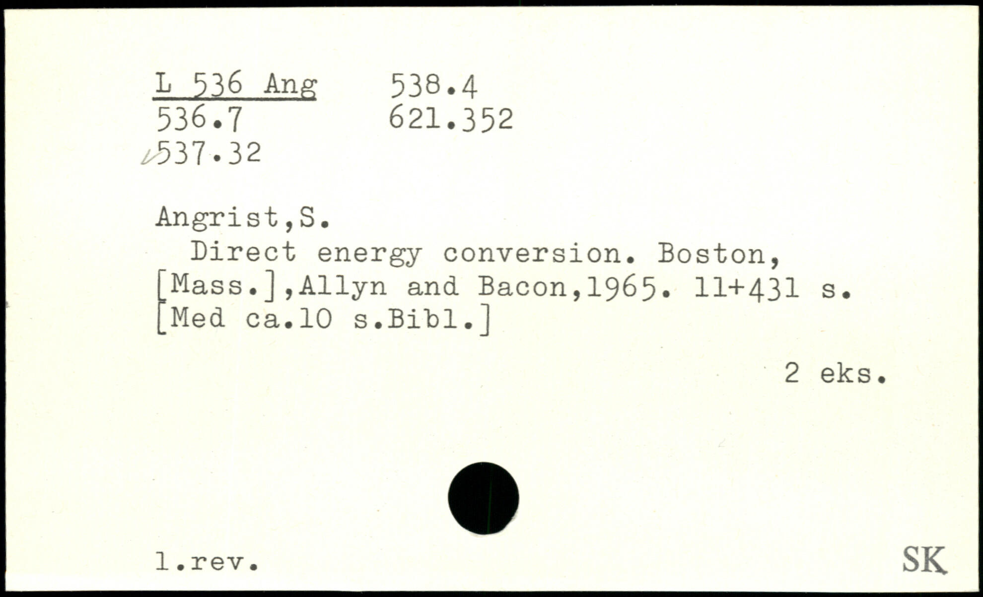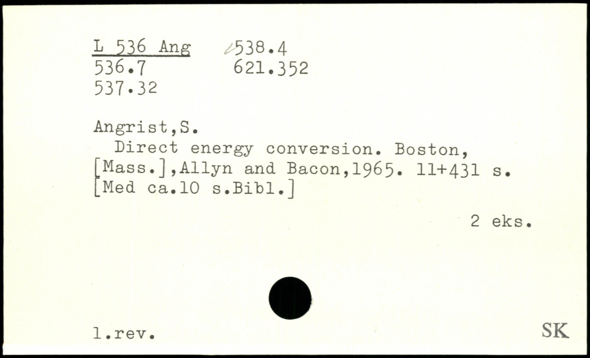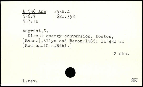 Direct energy conversion. Boston, 'Mass.],Allyn and Bacon,1965.