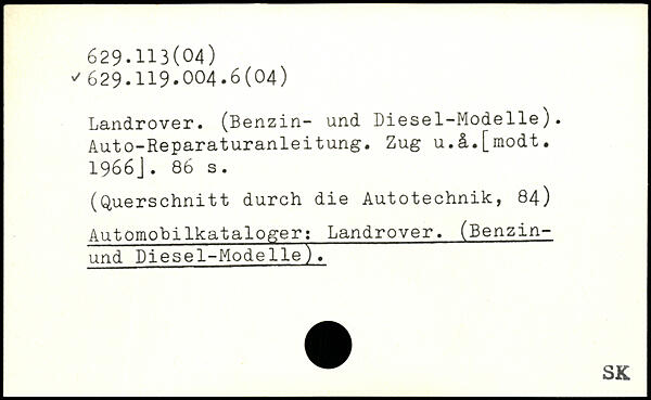 Landrover. (Benzin- und Diesel-Modelle). Auto-Reparaturanleitung. Zug u.ä.[modt. 1966J.