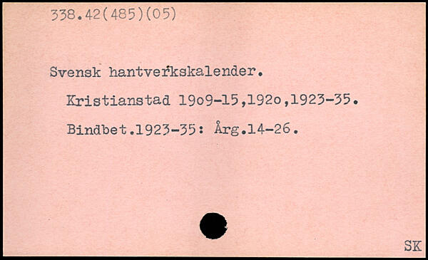 Svensk hantverkskalender. Kristianstad 19o9-15,192o,1923-35. Bindbet.1923-