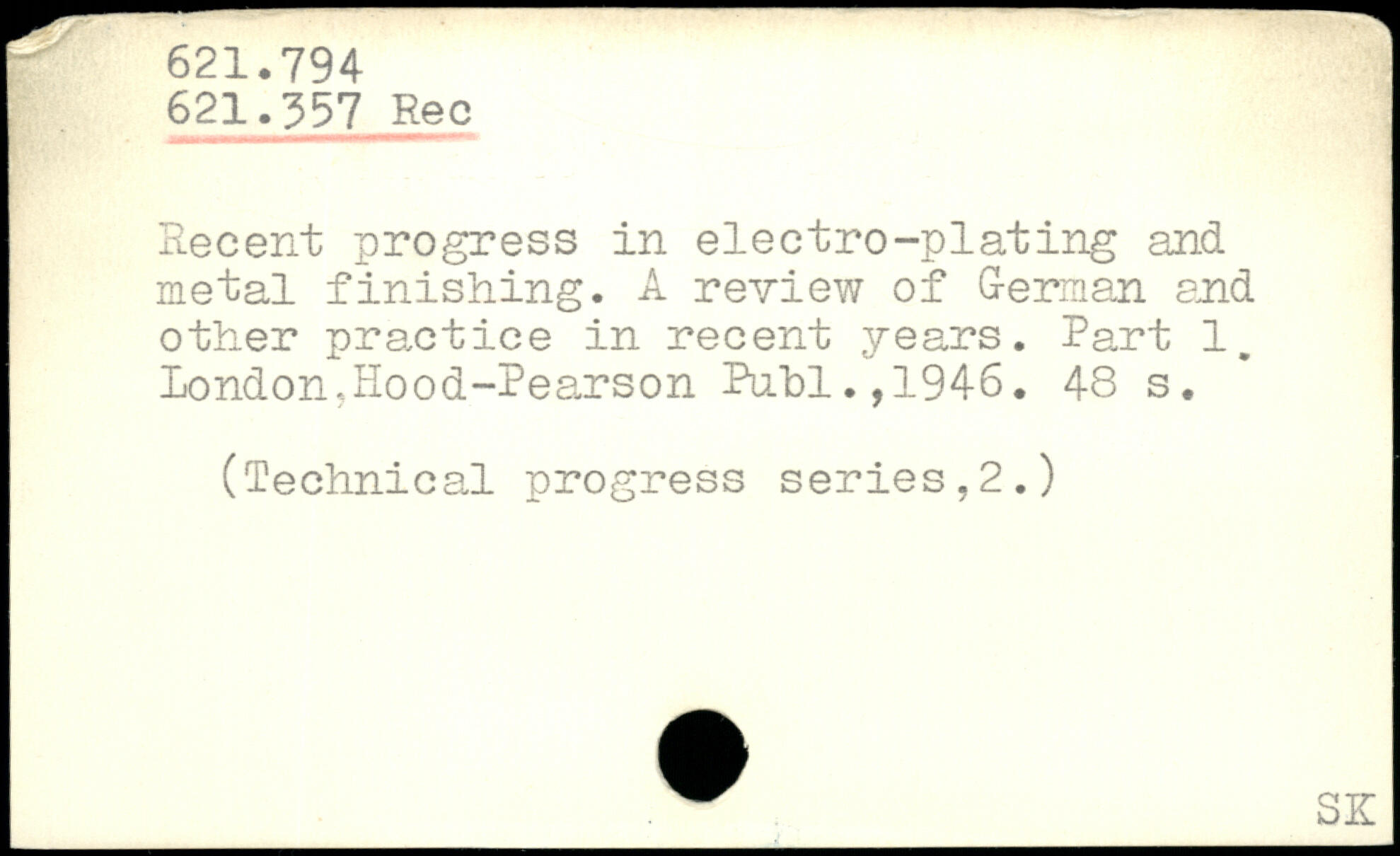 Recent progress in electro-plating and metal finishing. A review of G-erman and other practice in recent years. Part 1.