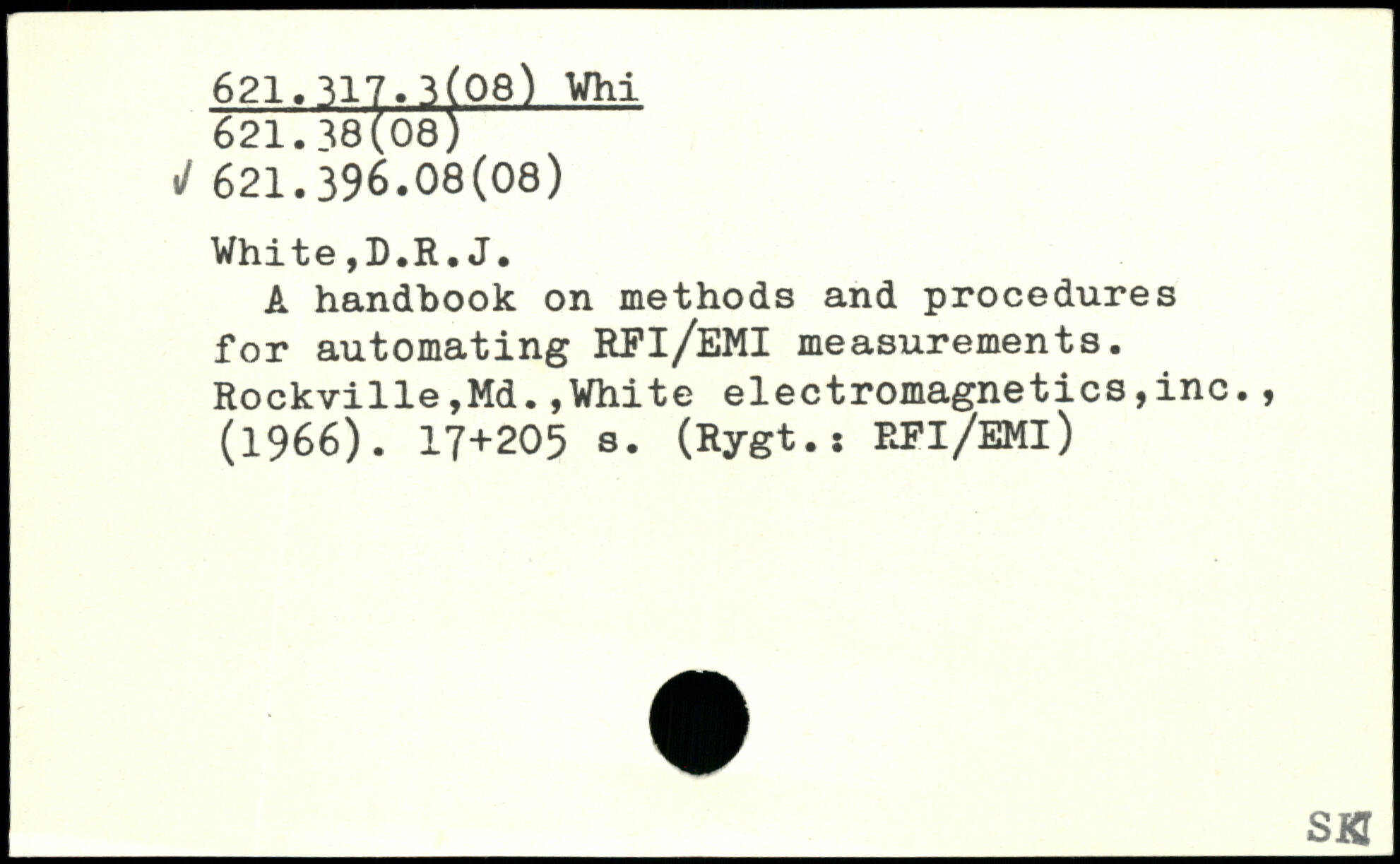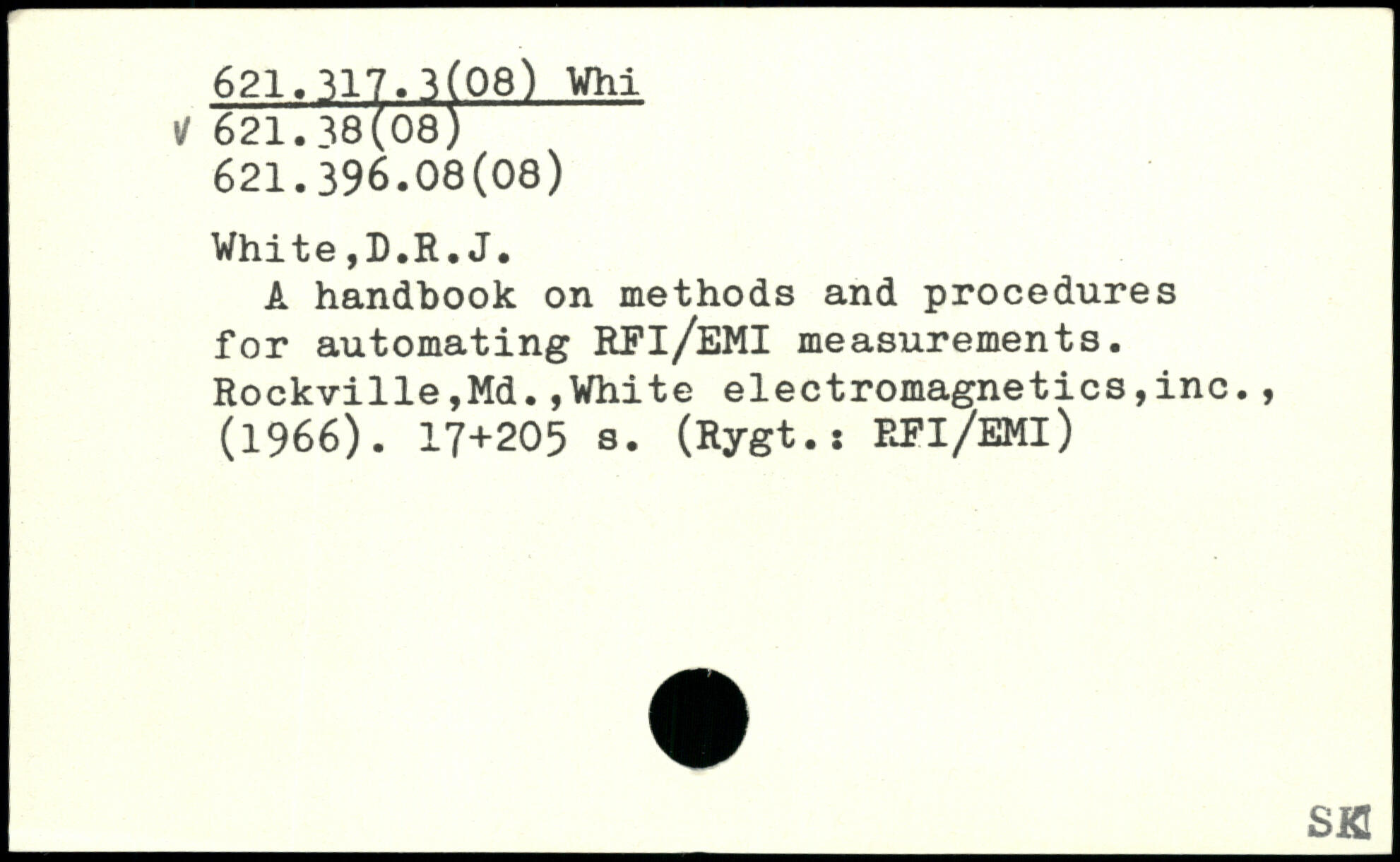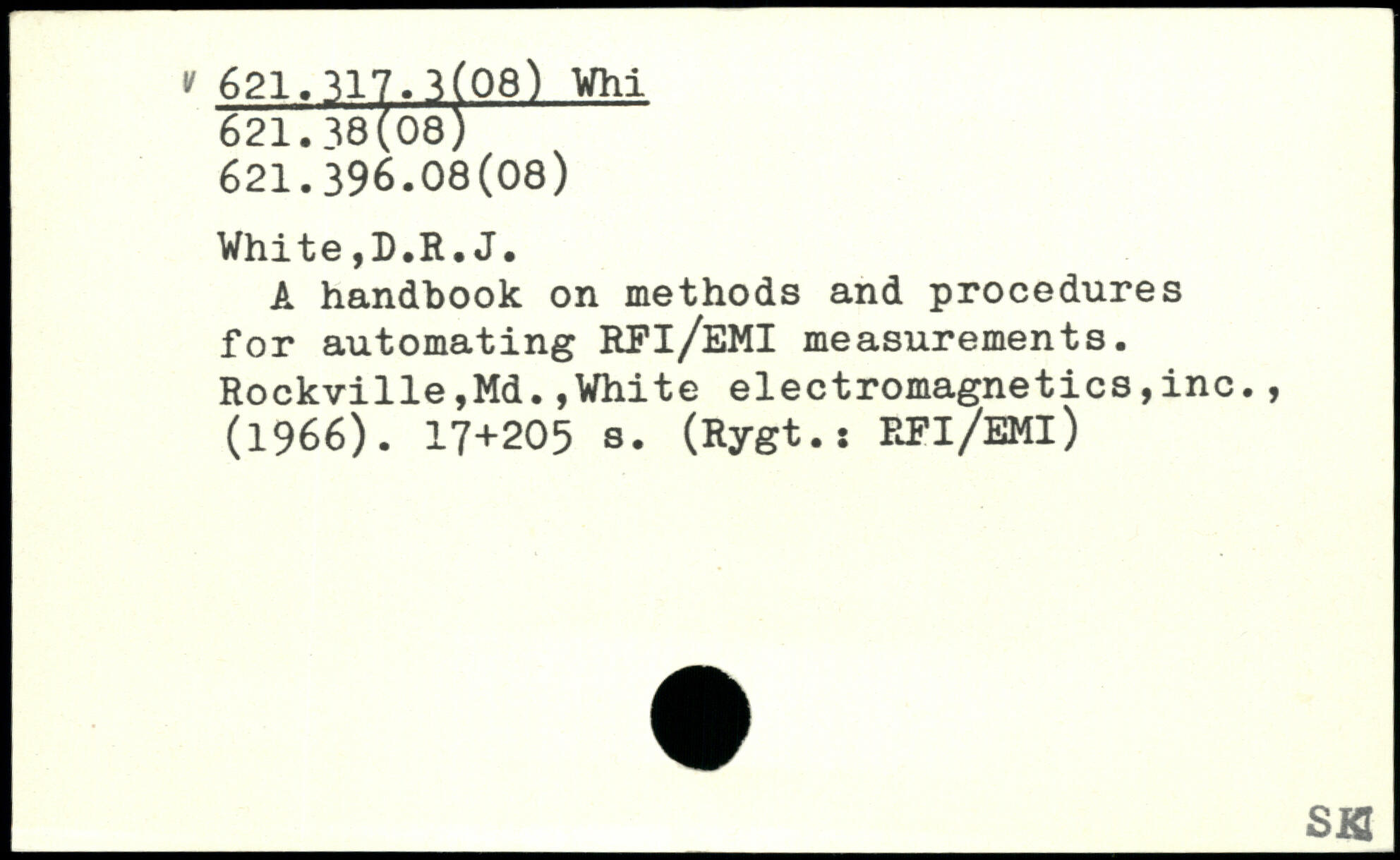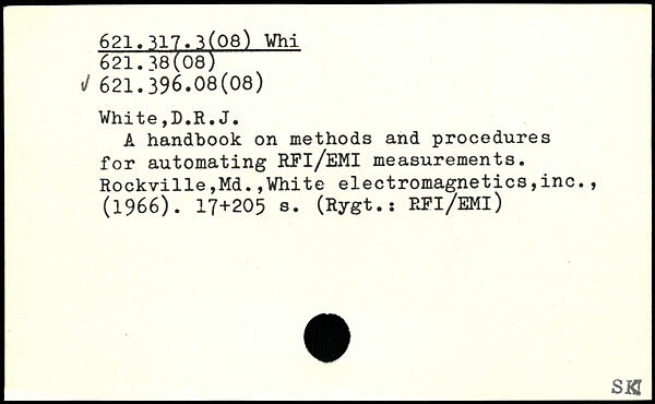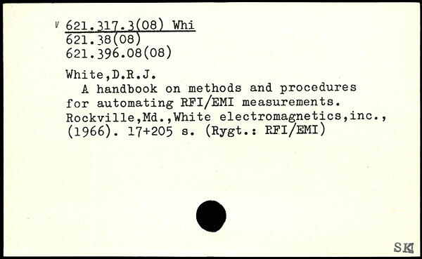 A handbook on methods and procedures for automating RFl/EMI measurements. Rockville,Md.,White electromagnetics,inc., (1966).