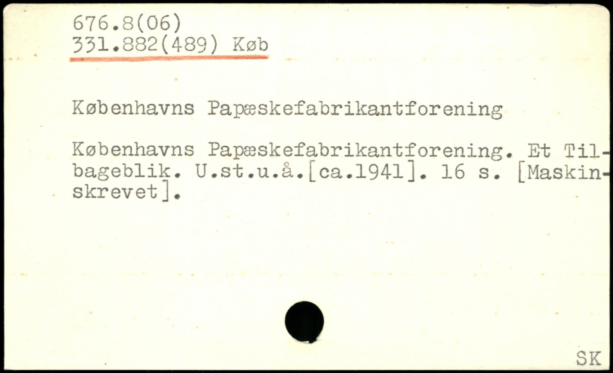Københavns Papæskefabrikantforening Københavns Papæskefabrikantforening. Et Tilbageblik. U.st,u.å.[ca,1941].