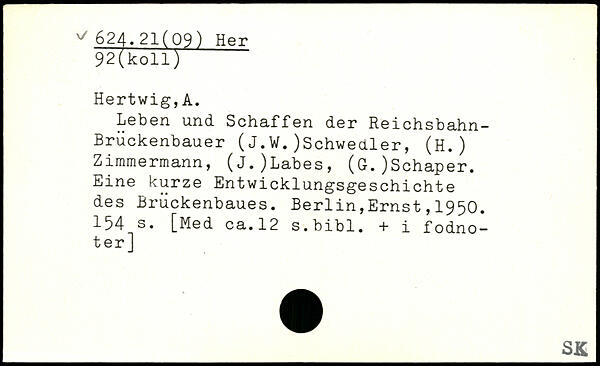 Leben und Schaffen der Reichsbahn-Brückenbauer (J.W.)Schwedler, (H.) Zimmermann, (j.)Labes, (G.)Schaper. Eine kurze Entwicklungsgeschichte des Brückenbaues.