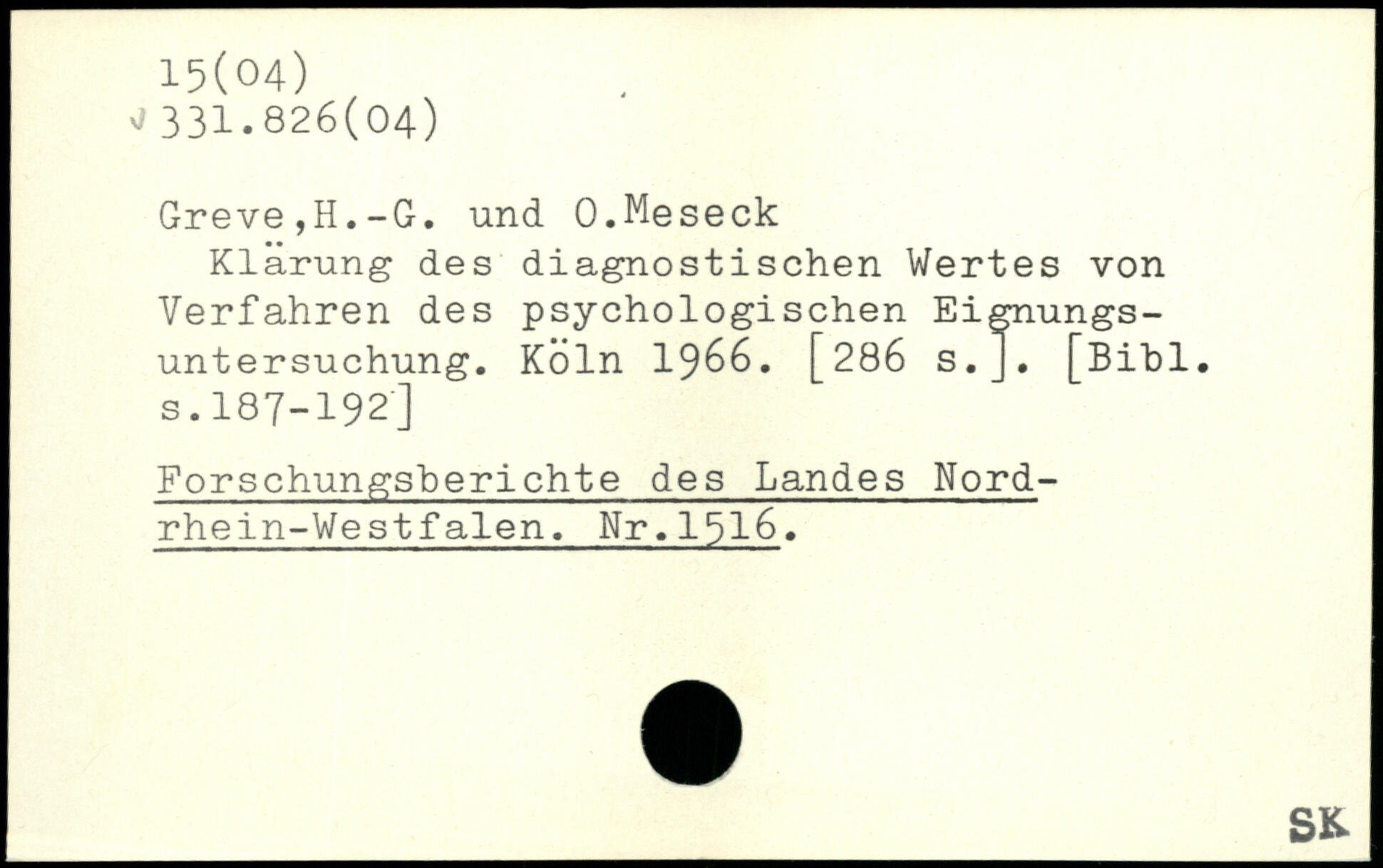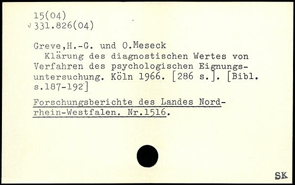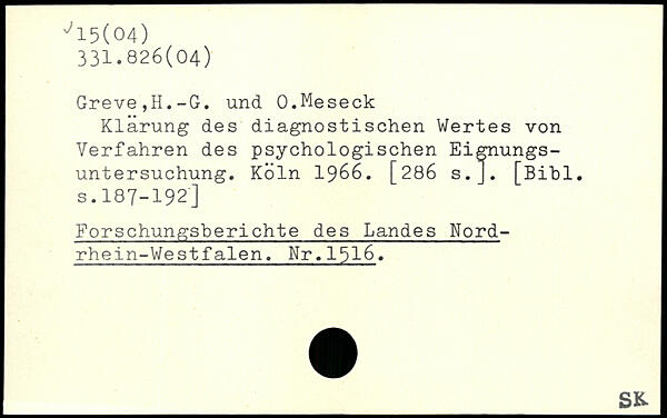 Klärung des diagnostischen Wertes von Verfahren des psychologischen Eignungsuntersuchung.