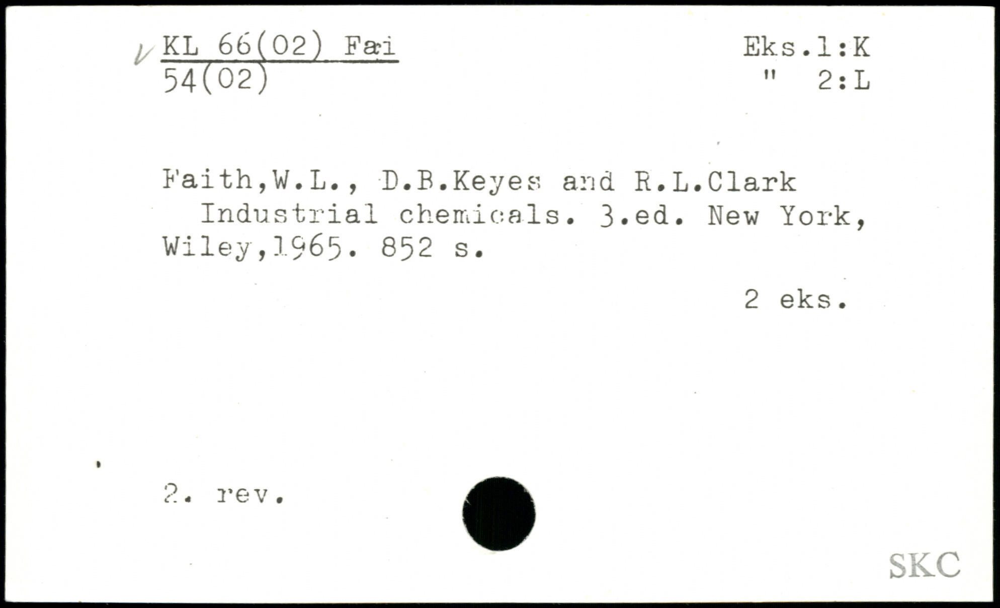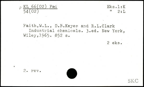 Faith,W.L., D.B.Keyes and R.L.Clark Industrial chemicals.