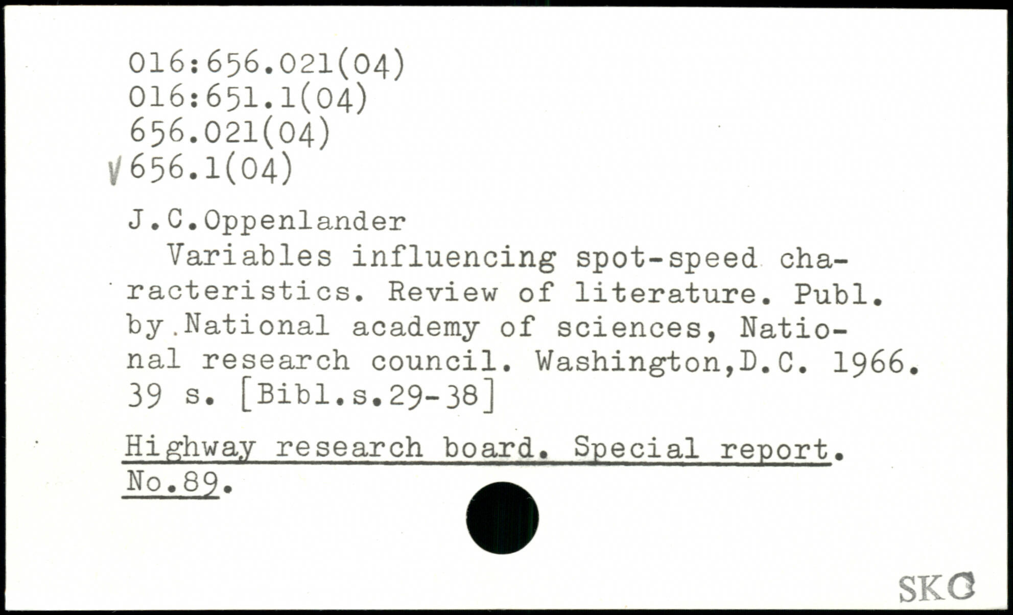 Variables influencing spot-speed characteristics. Review of literature.
