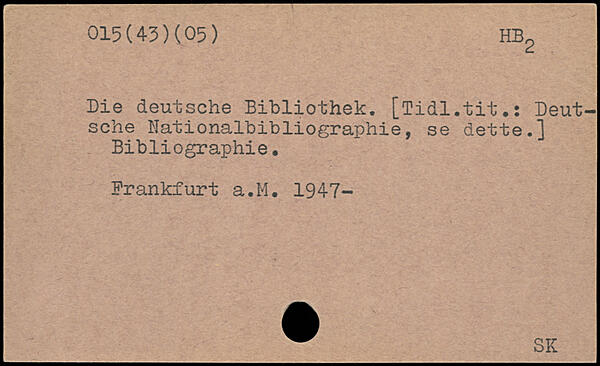 Die deutsche Bibliothek, [Tidl.tit.: Deutsche Nationalbibliographie, se dette.] Bibliographie, Frankfurt a.M. 1947-