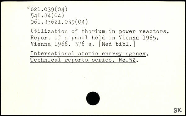 Utilization of thorium in power reactors. Report of a panel held in Vienna 1965, Vienna 1966.
