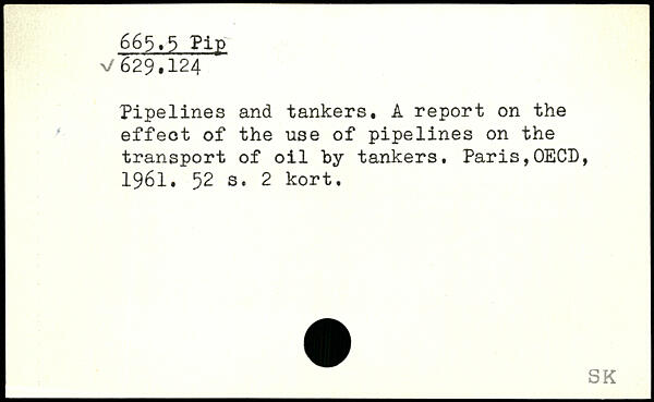 Pipelines and tankers. A report on the effect of the use of pipelines on the transport of oil by tankers