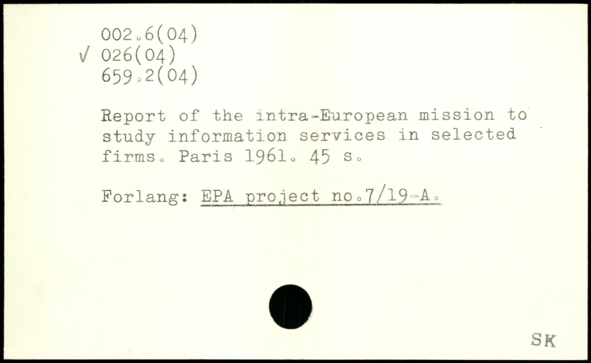 Report of the intra-European mission to study information services in selected firmso