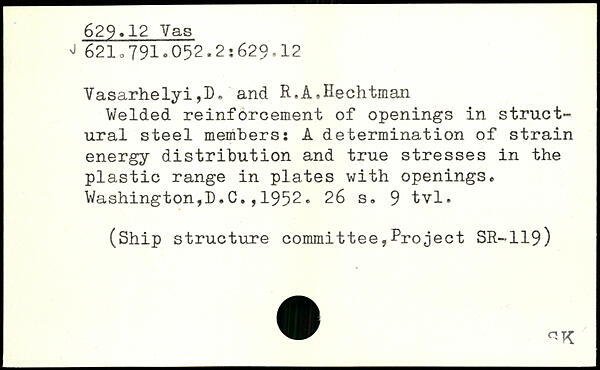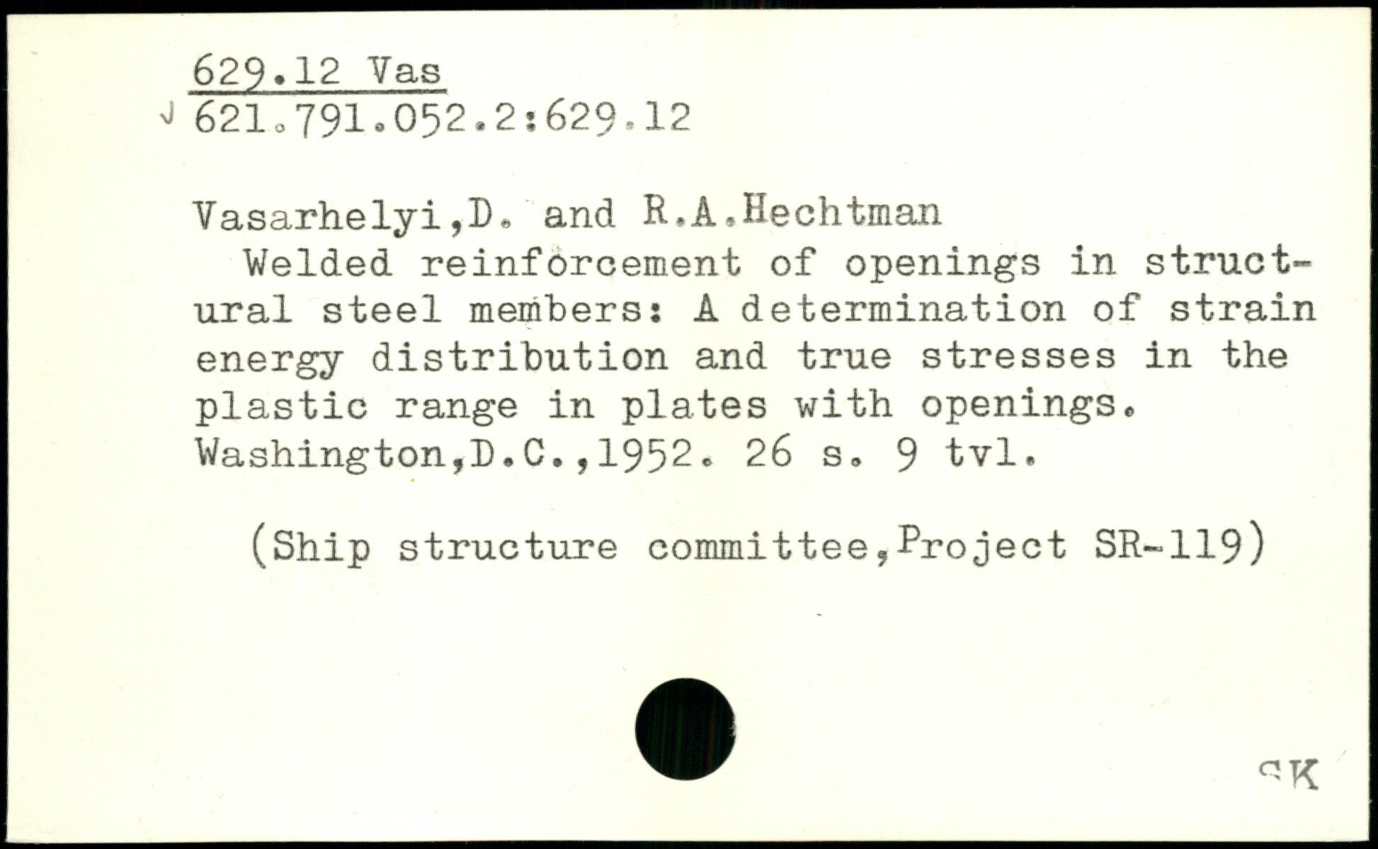 Welded reinforcement of openings in structural steel members: A determination of strain energy distribution and true stresses in the plastic range in plates with openings.
