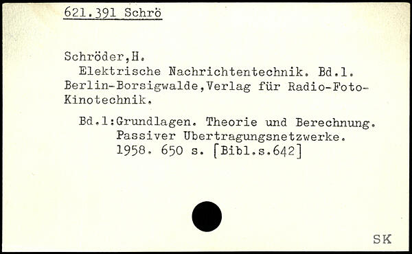 Elektrische Nachrichtentechnik. Ed,1. Berlin-Borsigwalde,Verlag für Radio-Foto-Kinotechnik. Bd.lsGrundlagen. Theorie und Berechnung. Passiver Ubertragungsnetzwerke. 1958.