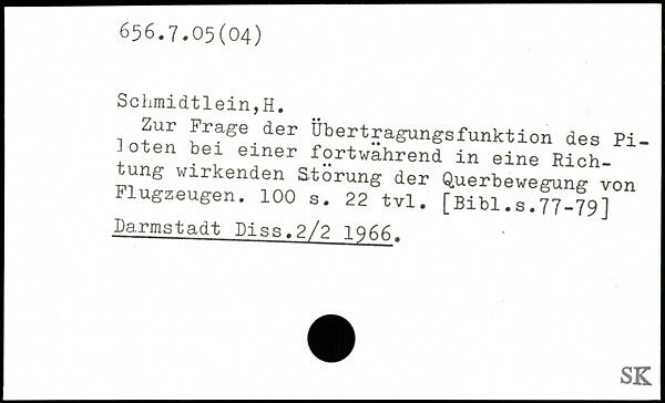 , ,Z” Frage der Übertragungsfunktion des Piloten bei einer fortwährend in eine Richtung wirkenden Storung der Querbewegung von Flugzeugen.