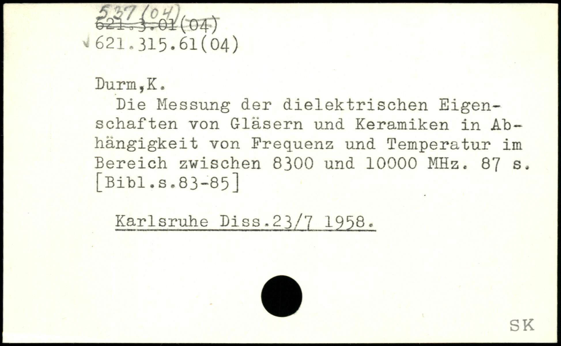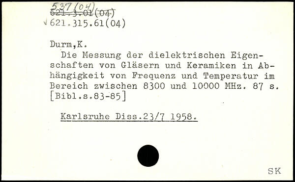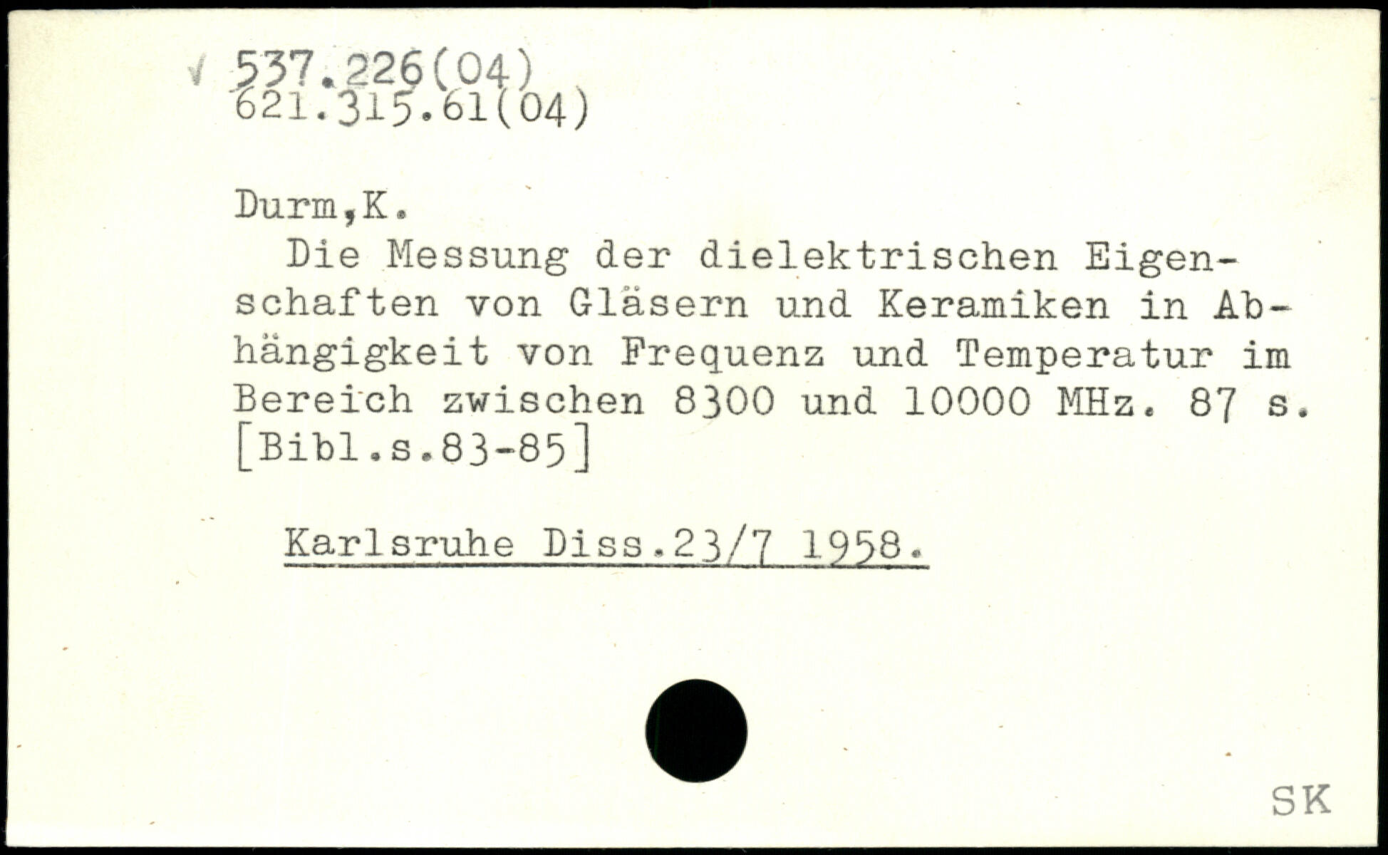 Die Messung der dielektrischen Eigenschaften von Gläsern und Keramiken in Abhängigkeit von Frequenz und Temperatur im Bereich zwischen 8300 und 10000 MHz.