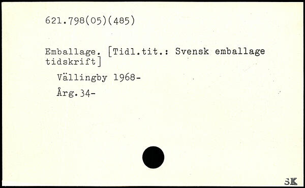 Emballage. [Tidl.tit.s Svensk emballage tidskrift] Vällingby 1968-Årg.34-
