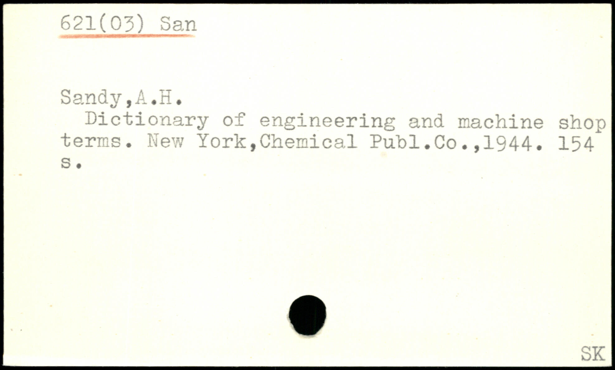 Dictionary of engineering and machine shop terms. New York,Chemical Publ.Co.,1944. 154" s.