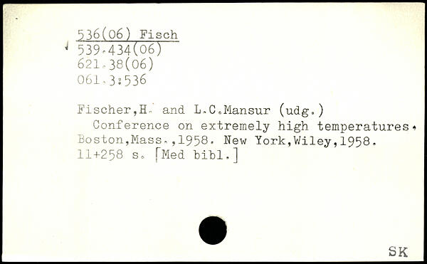 Fischer,H,' and L,C,Mansur (udg. ) Conference on extremely high temperatures. Boston,Mass, , 1958.