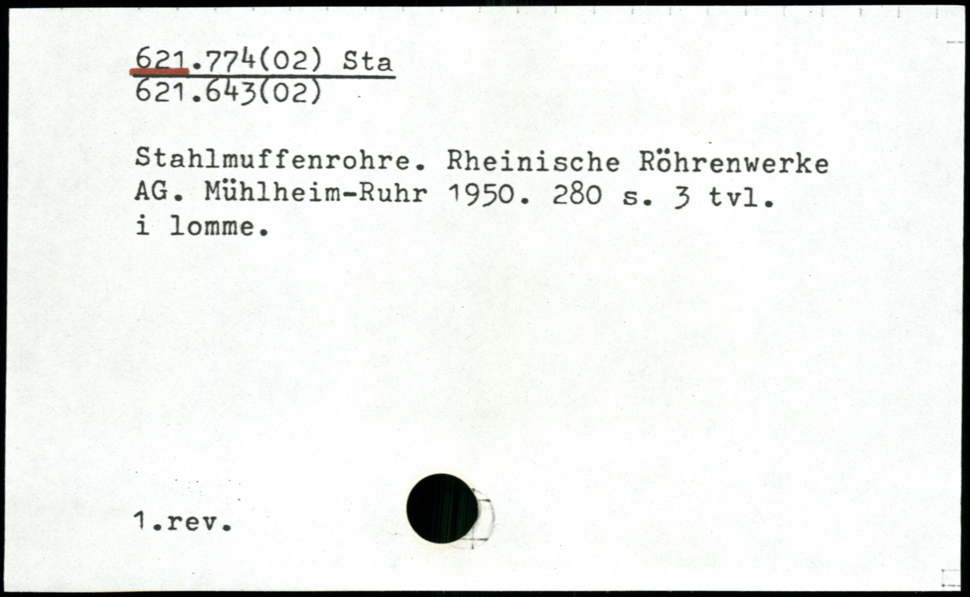 Stahlmuffenrohre. Rheinische Röhrenwerke AG. Mühlheim-Ruhr 1950.