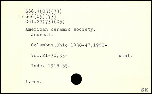 American ceramic society. Journal. Columbus,Ohio 1938-47>1950-