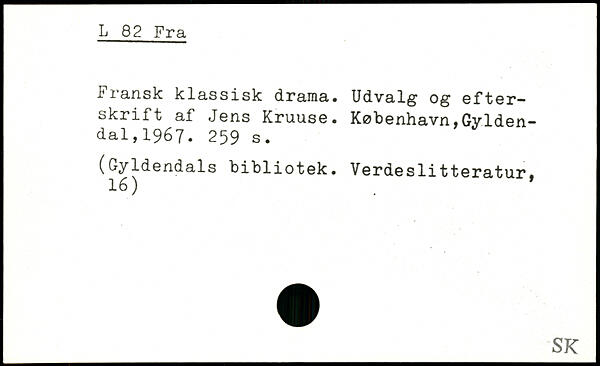Fransk klassisk drama. Udvalg og efterskrift af Jens Kruuse.