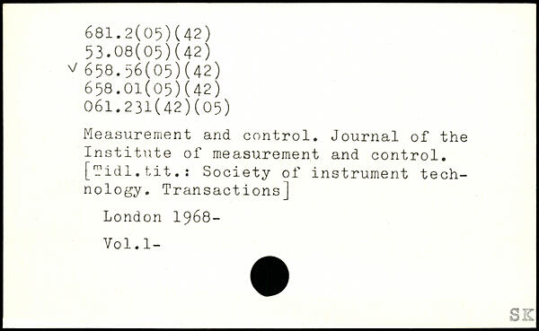 Measurement and control. Journal of the Institute of measurement and control, [-idl.tit.: Society of instrument technology. Transactions] London I96Q- Vol.l-