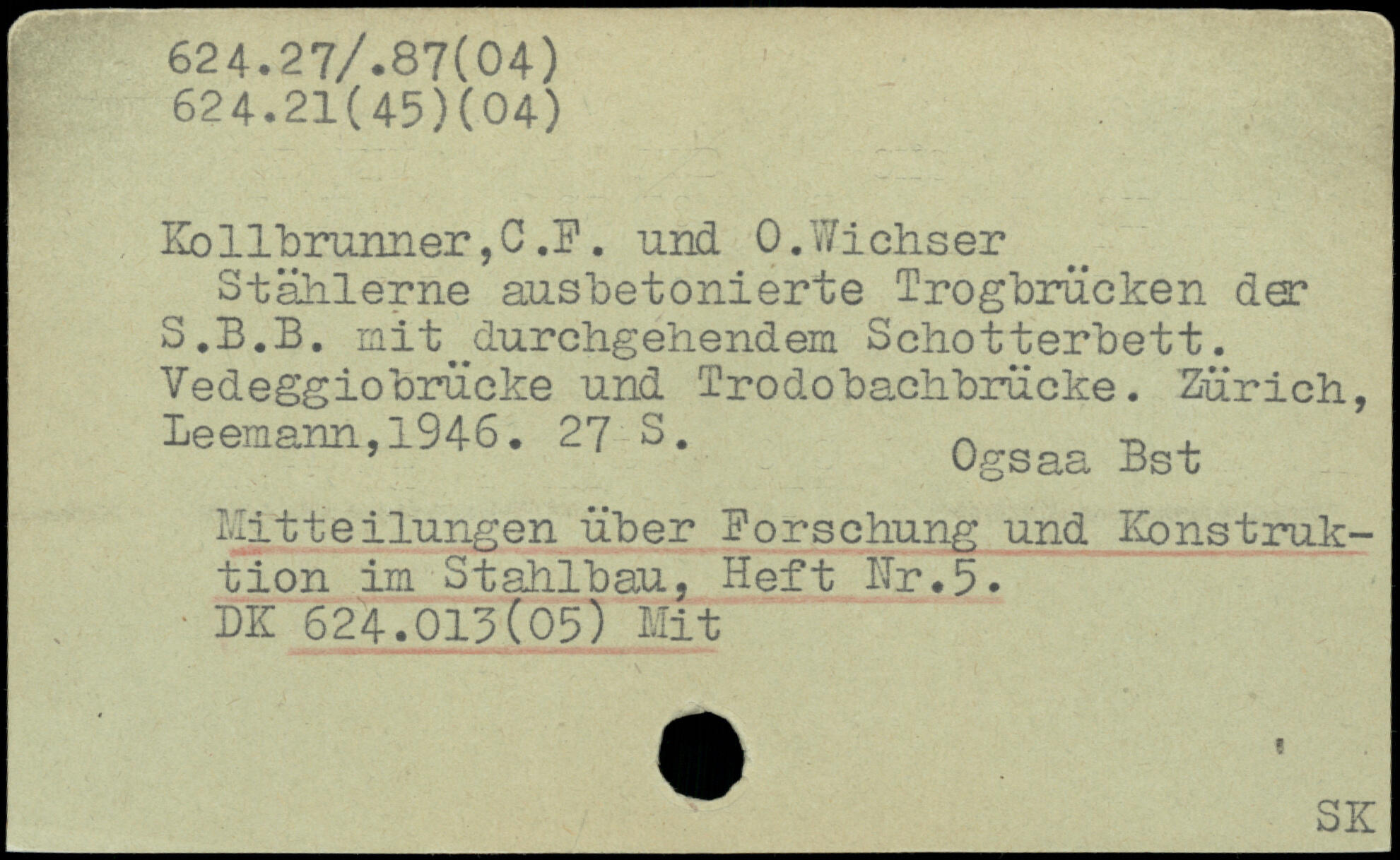 Kbllbrunner,C.F. und 0.Wichser Stählerne ausbetonierte Trogbrüchen der S.B.B. mit^durchgehendem Schotterbett. Vedeggiobrücke und Trodobachbrücke. Zürich, leemam,1946.