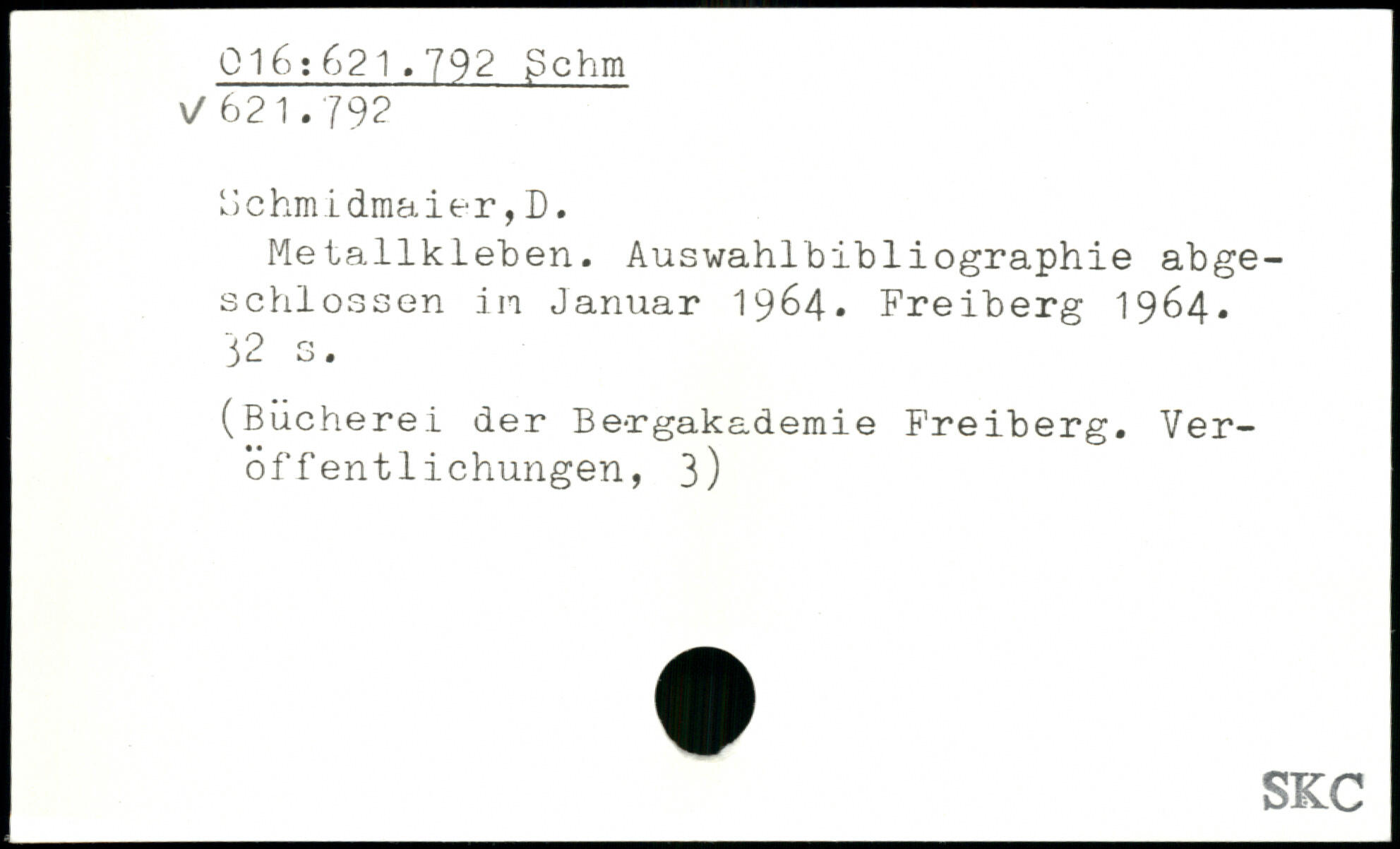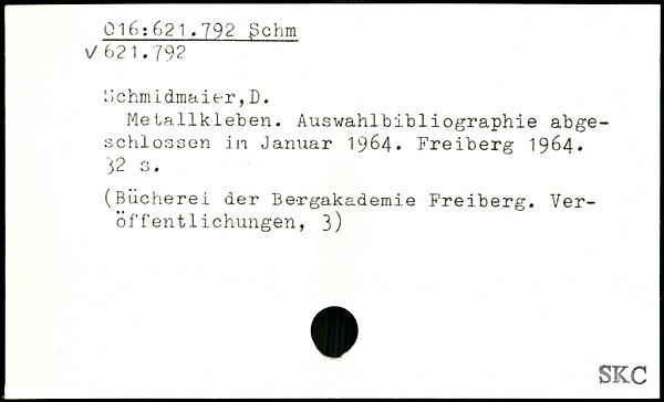 ‘Je hm idmaier, D. Metallkleben. Auswahlbibliographie abgeschlossen in Januar 1964, Freiberg 1964.
