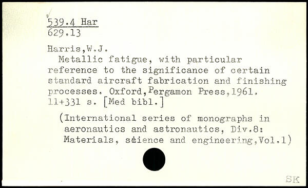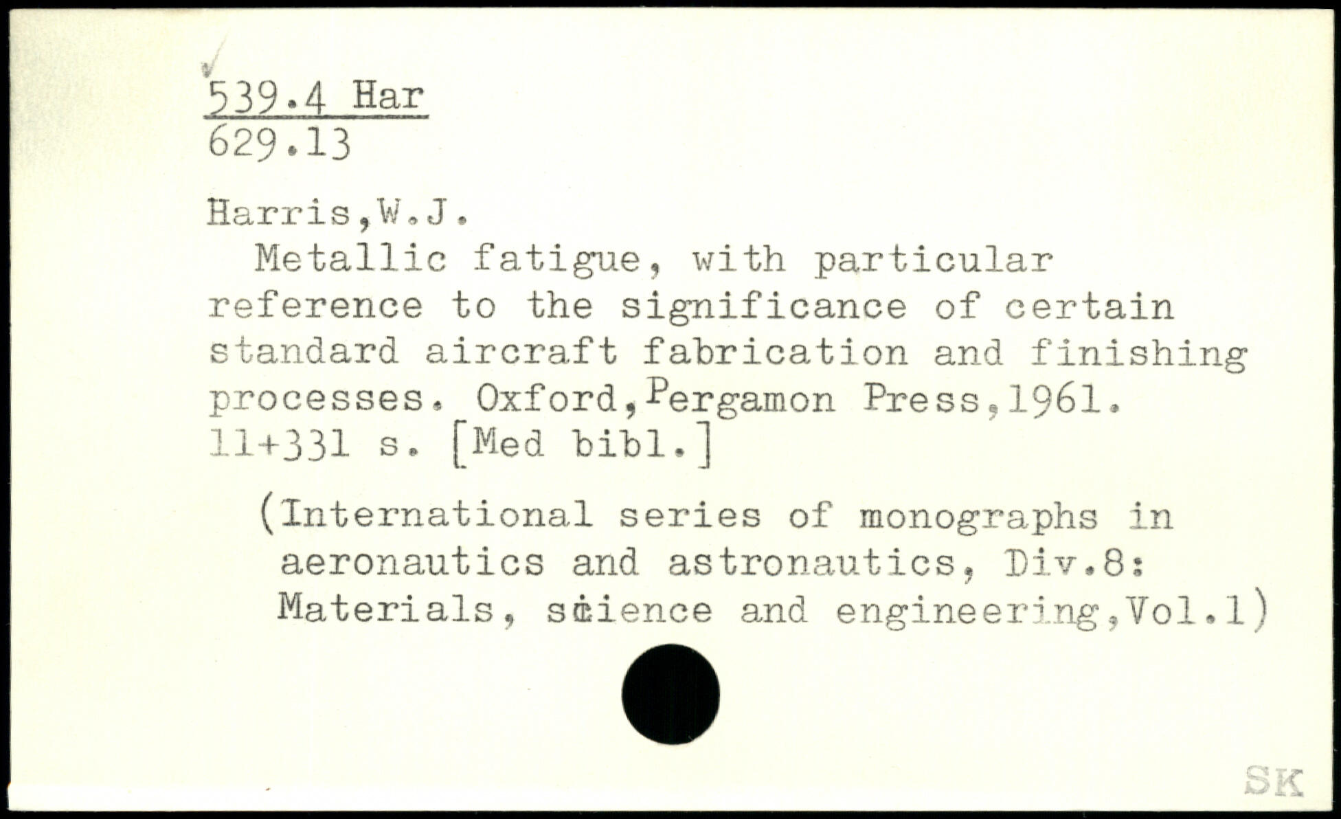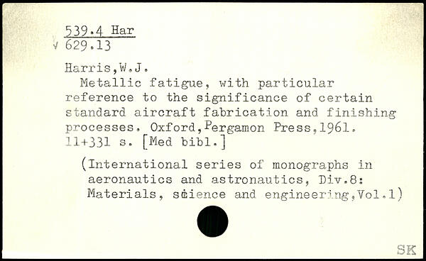 Metallic fatigue, with particular reference to the significance of certain standard aircraft fabrication and finishing processes.