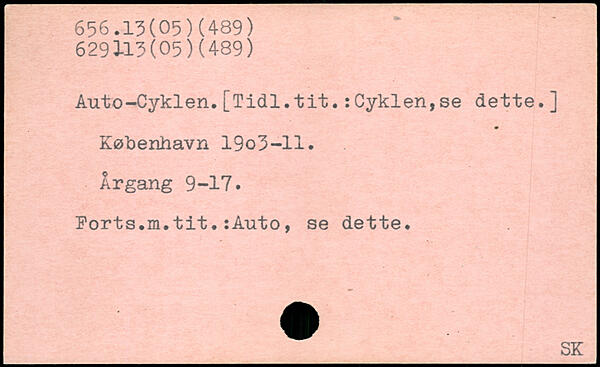 Auto-Cyklen. [Ticli.tit. :Cyklen,se dette. ] København 19o3-ll. Årgang 9-17. Ports.m.tit.:Auto, se dette.