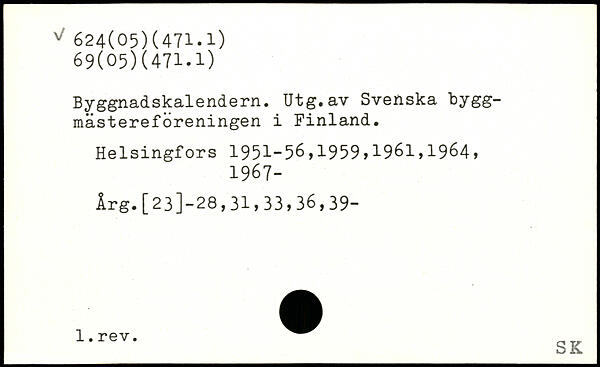 Byggnadskalendern. Utg.av Svenska bygg-mästereföreningen i Finland.