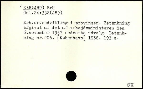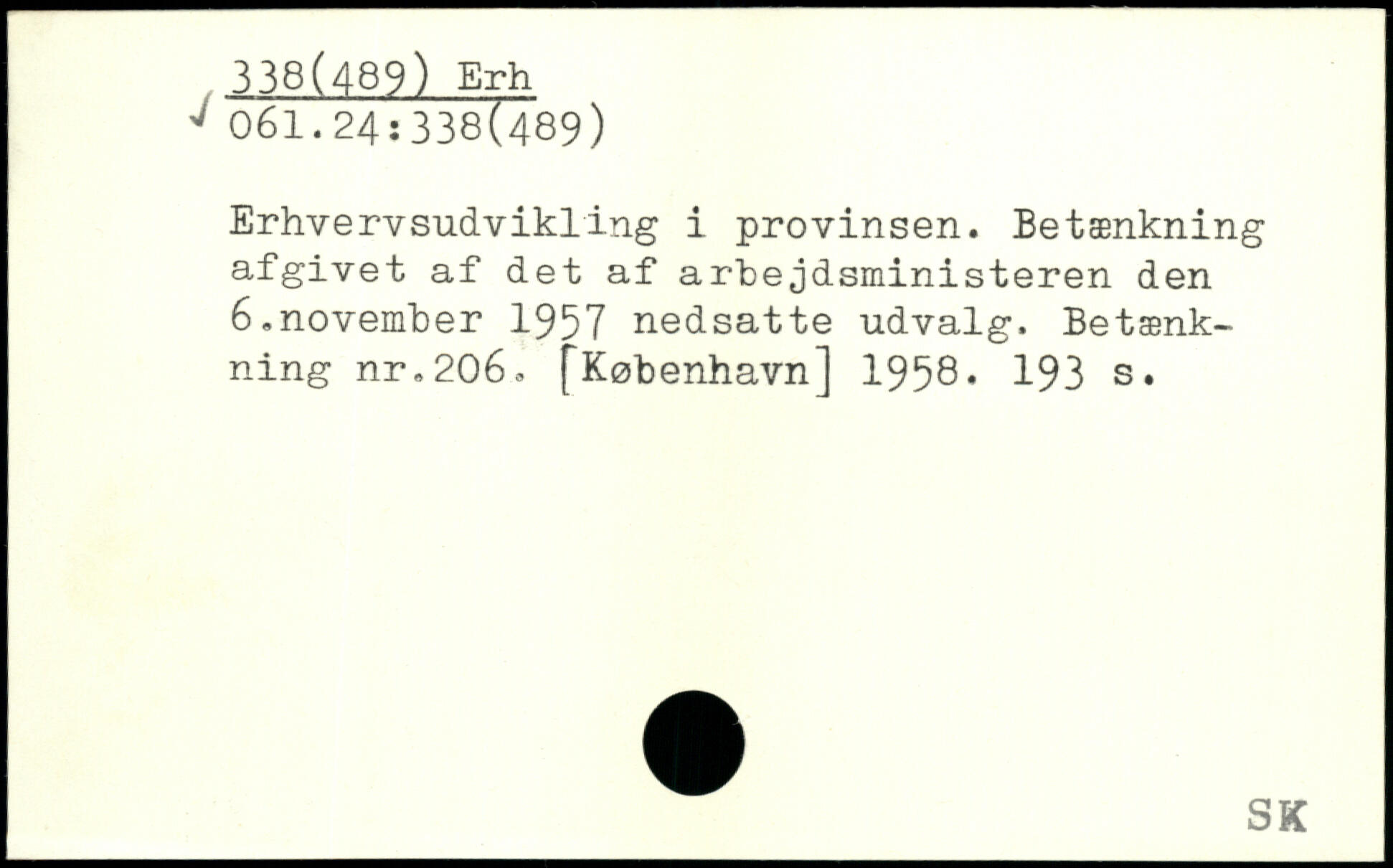 Erhvervsudvikling i provinsen. Betænkning afgivet af det af arbejdsministeren den 6.november 1957 nedsatte udvalg. Betænkning nr.206