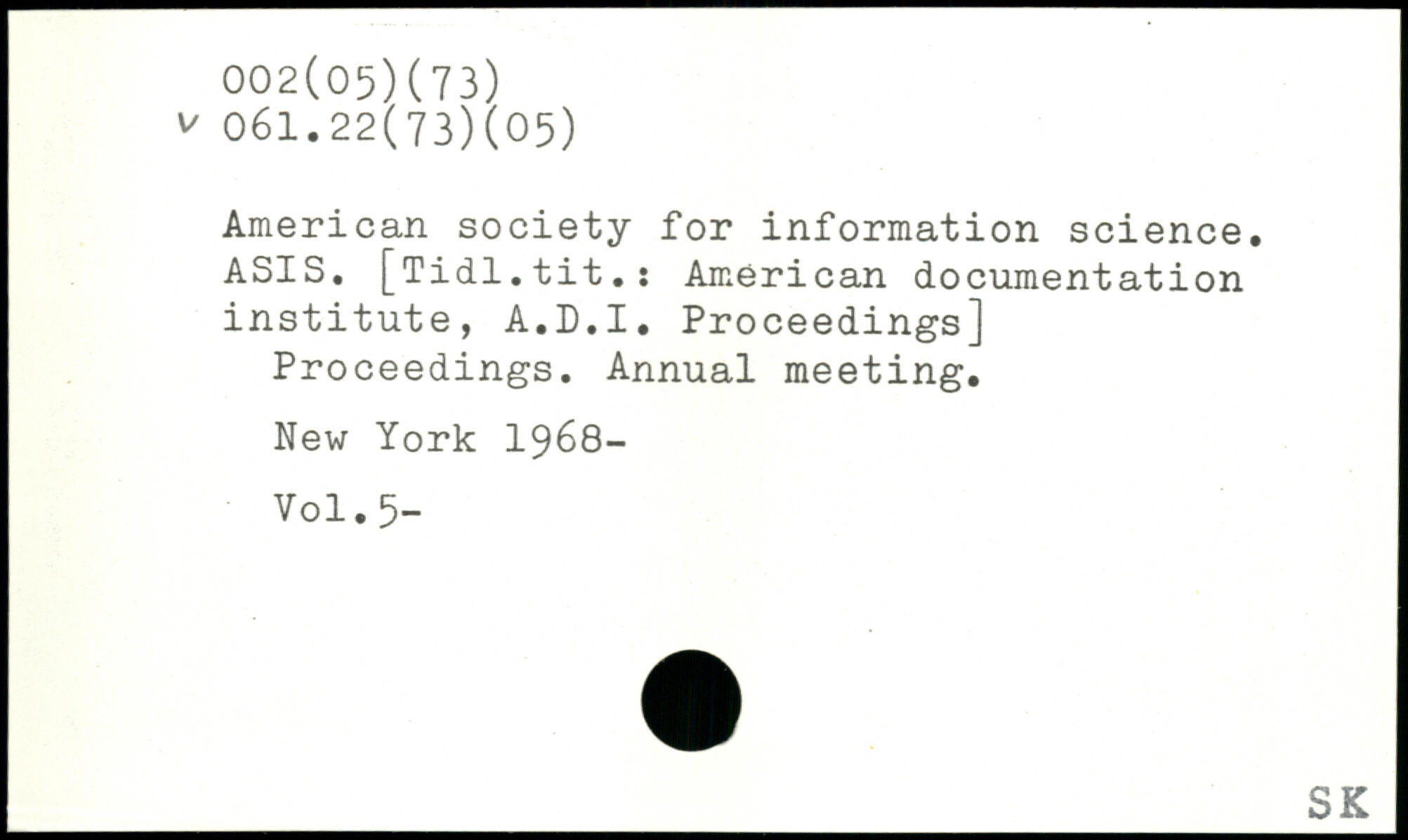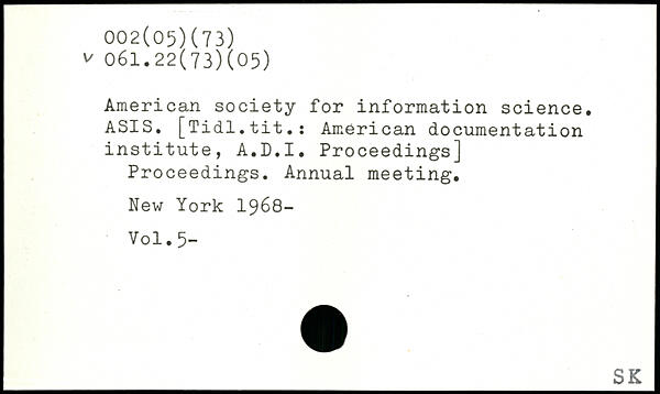 American society for information science. ASIS. [Tidl.tit.: American documentation institute, A.D.I. Proceedings] Proceedings. Annual meeting.