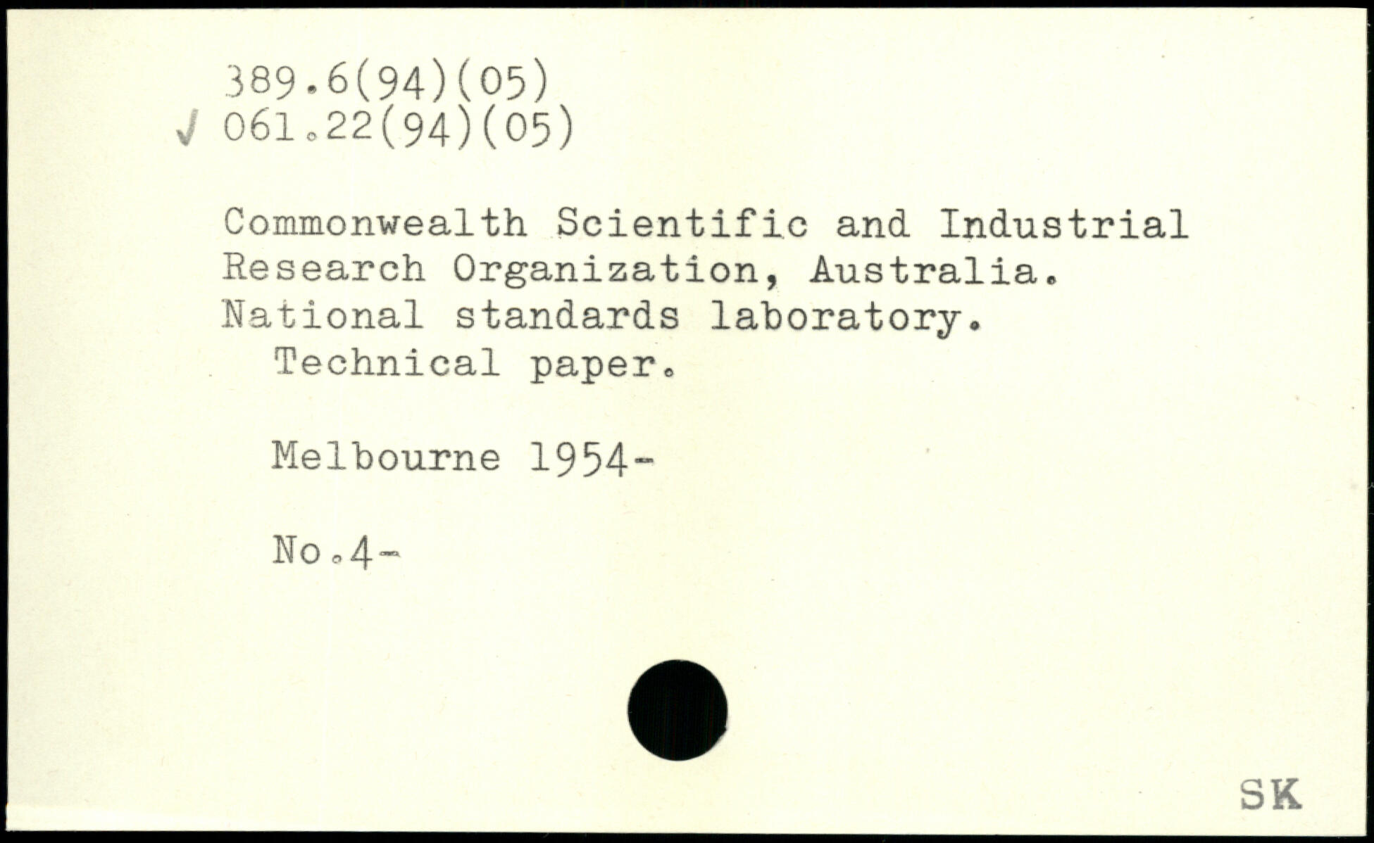 Commonwealth Scientific and Industrial Research Organization, Australia. National standards laboratory. Technical paper. Melbourne 1954“ No .4"