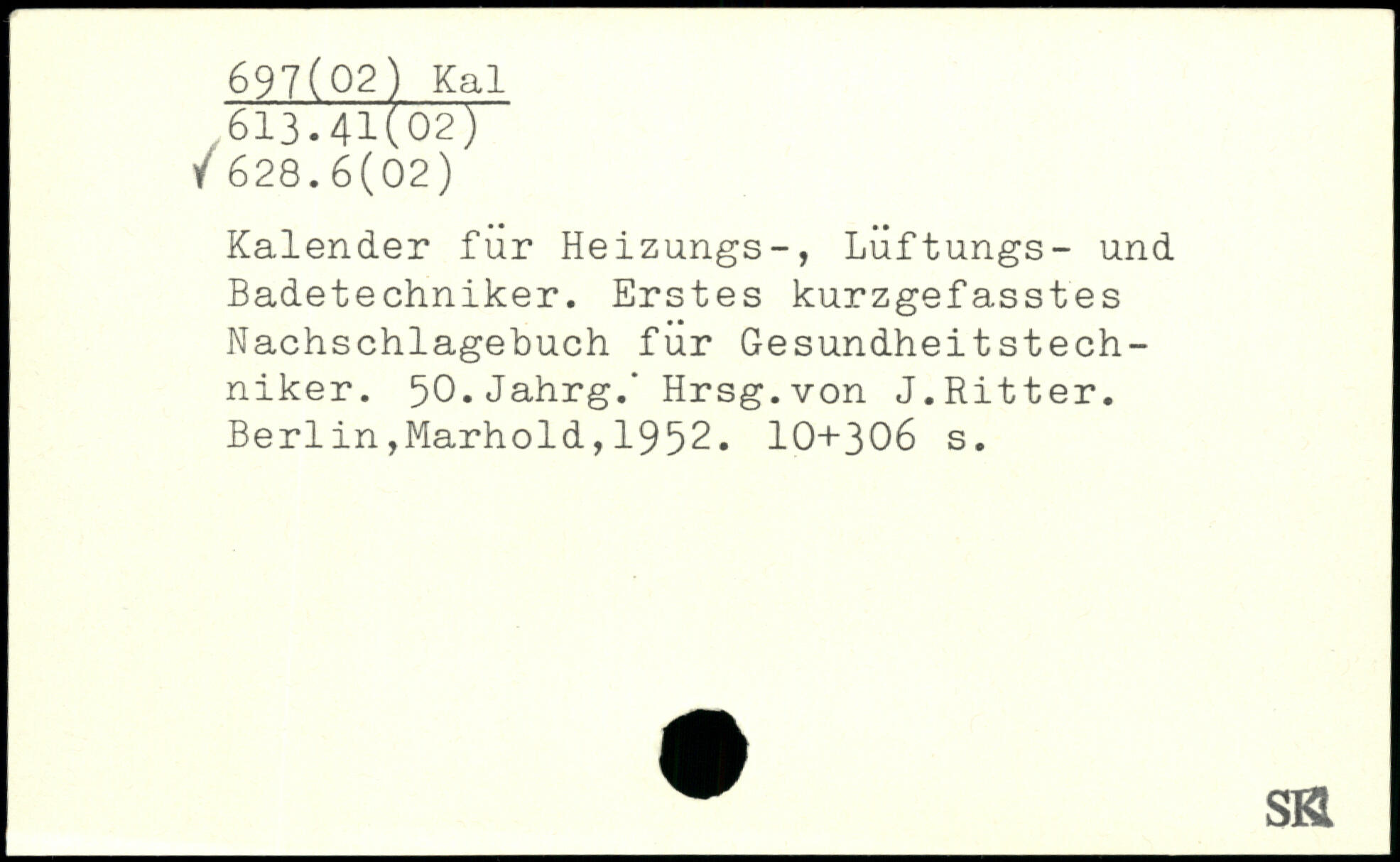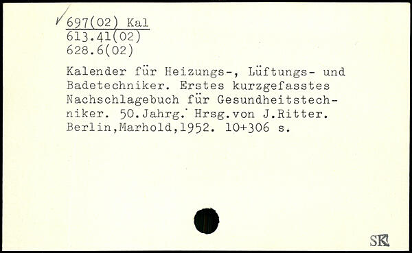 Kalender für Heizungs-, Luftungs- und Badetechniker. Erstes kurzgefasstes Nachschlagebuch für Gesundheitstechniker. 50.Jahrg.’ Hrsg, von J. Ritter.