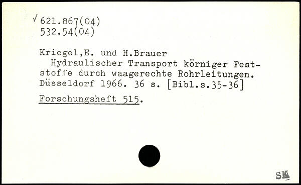 Hydraulischer Transport körniger Feststoffe durch waagerechte Rohrleitungen. Düsseldorf 1966.