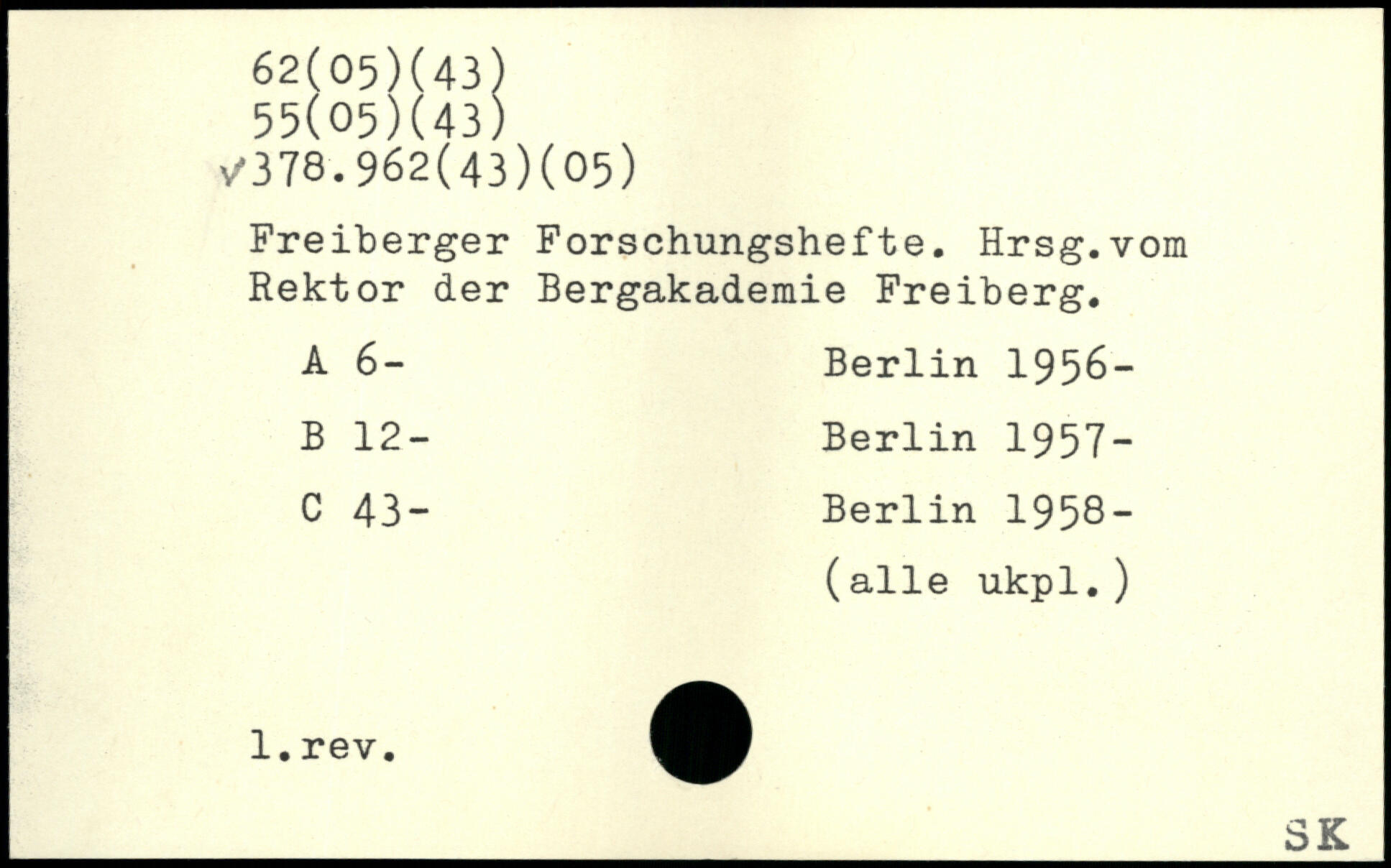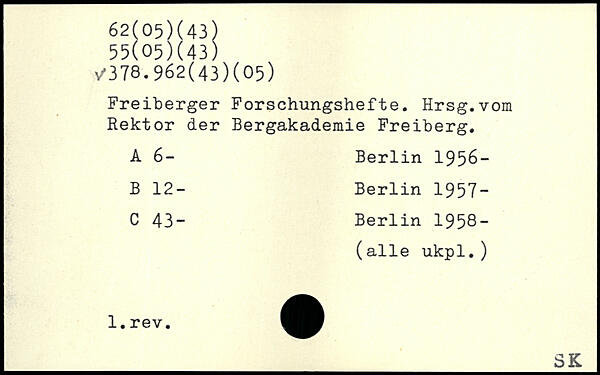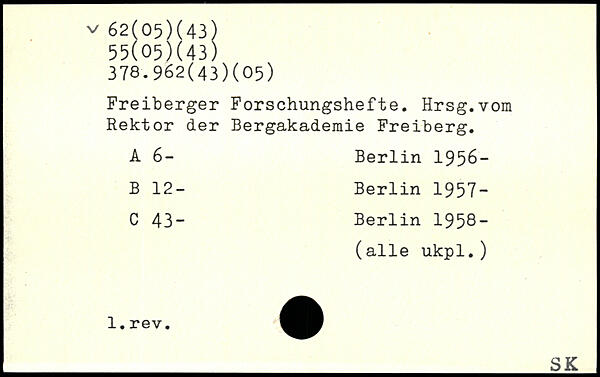 Freiberger Forschungshefte. Hrsg.vom Rektor der Bergakademie Freiberg. A 6-