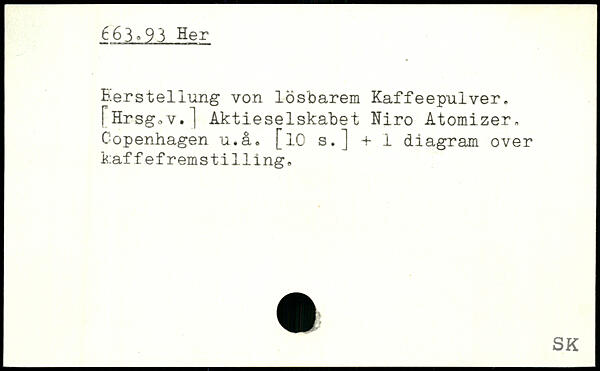 Herstellung von lösbarem Kaffeepulver, fHrsgoV.] Aktieselskabet Niro Atomizer, Copenhagen u.å. [lO s.] + 1 diagram over kaffefremst1111ng