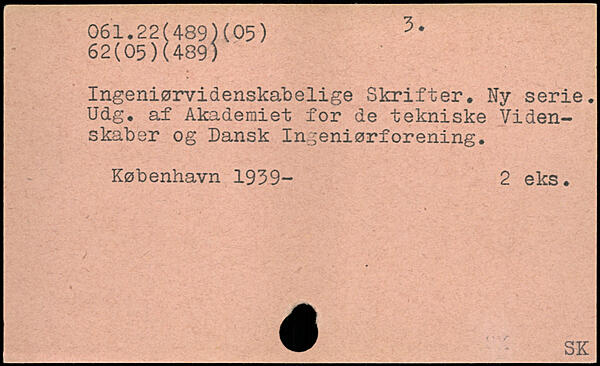 Ingeniørvidenskabelige Skrifter. Ny serie. Udg. af Akademiet for de tekniske Videnskaber og Dansk Ingeniørforening.