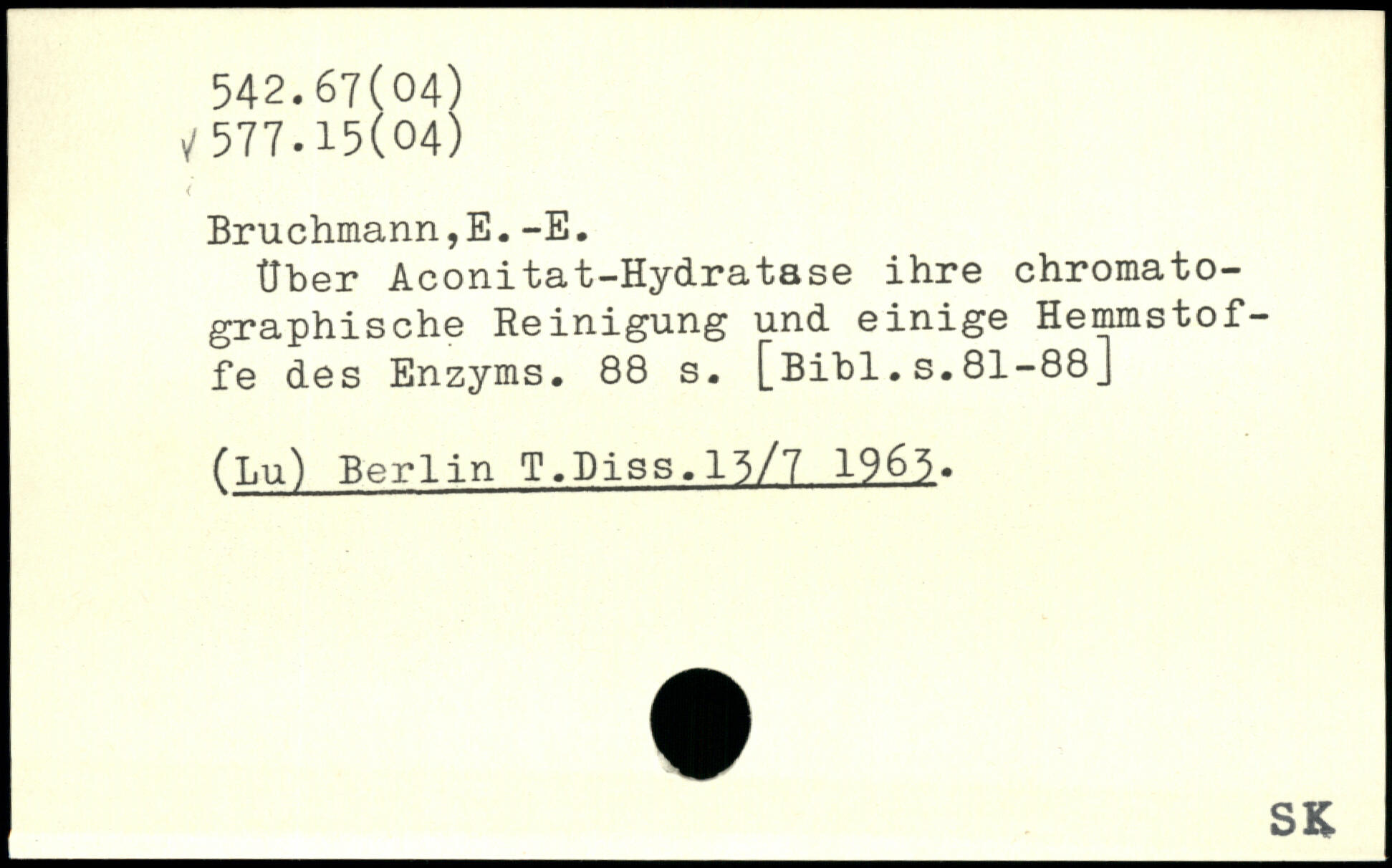 Über Aconitat-Hydratase ihre chromatographische Reinigung und einige Hemmstoffe des Enzyms.