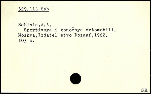 Sportivnye i gonocnye avtomobili. Moskva,Izdatel1stvo Dosaaf,1962. 103 b.