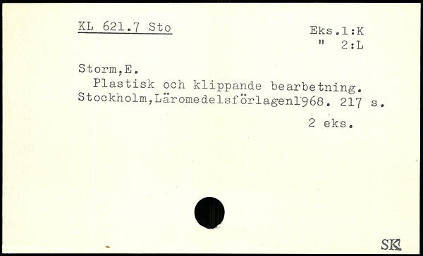 Plastisk och klippande bearbetning. Stockholm,Läromedelsförlagenl'968.