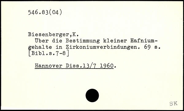 Uber die Bestimmung kleiner Hafniumgehalte in Zirkoniumverbindungen.