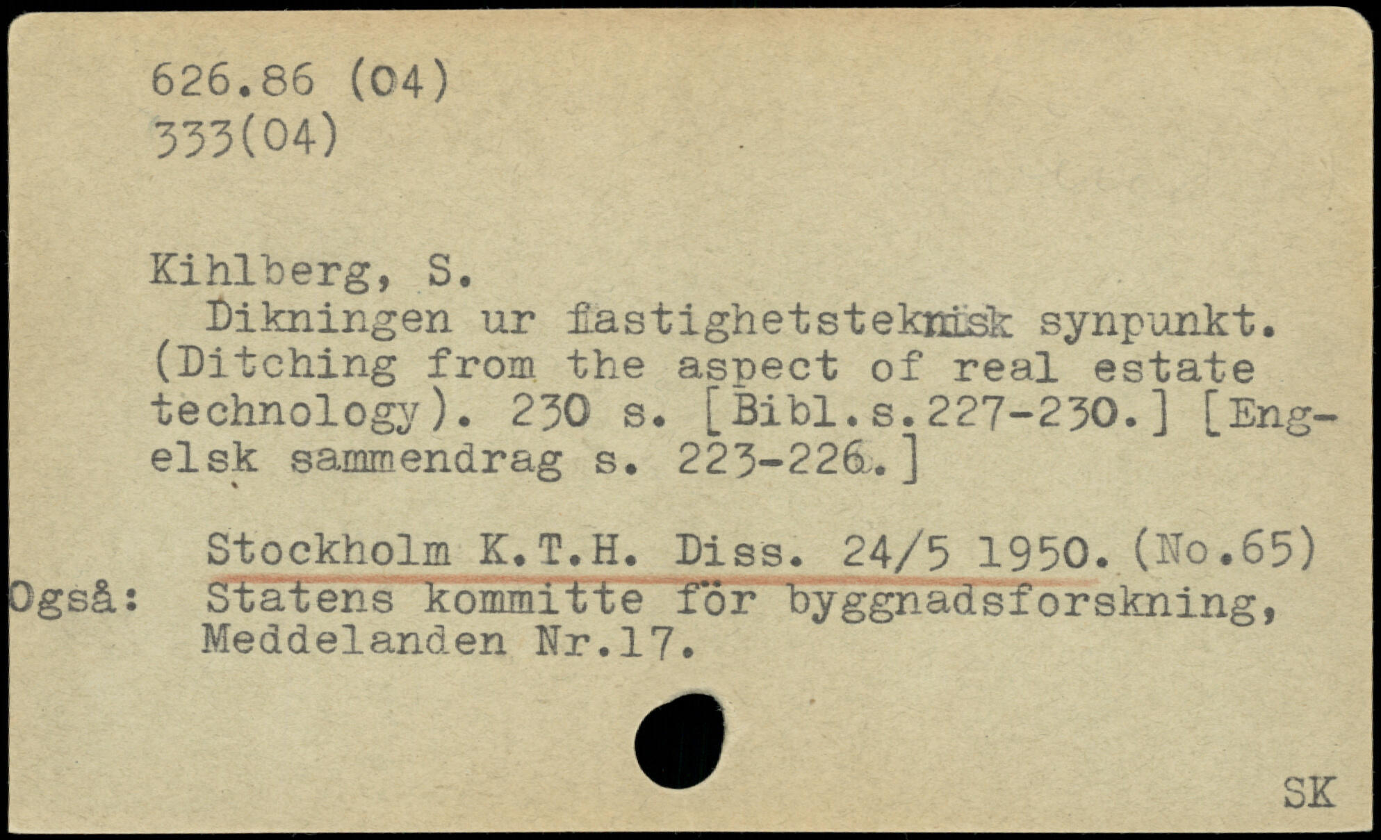 Dikningen ur fastighetstekmsk synpunkt. (Ditching from the aspect of real estate technology).
