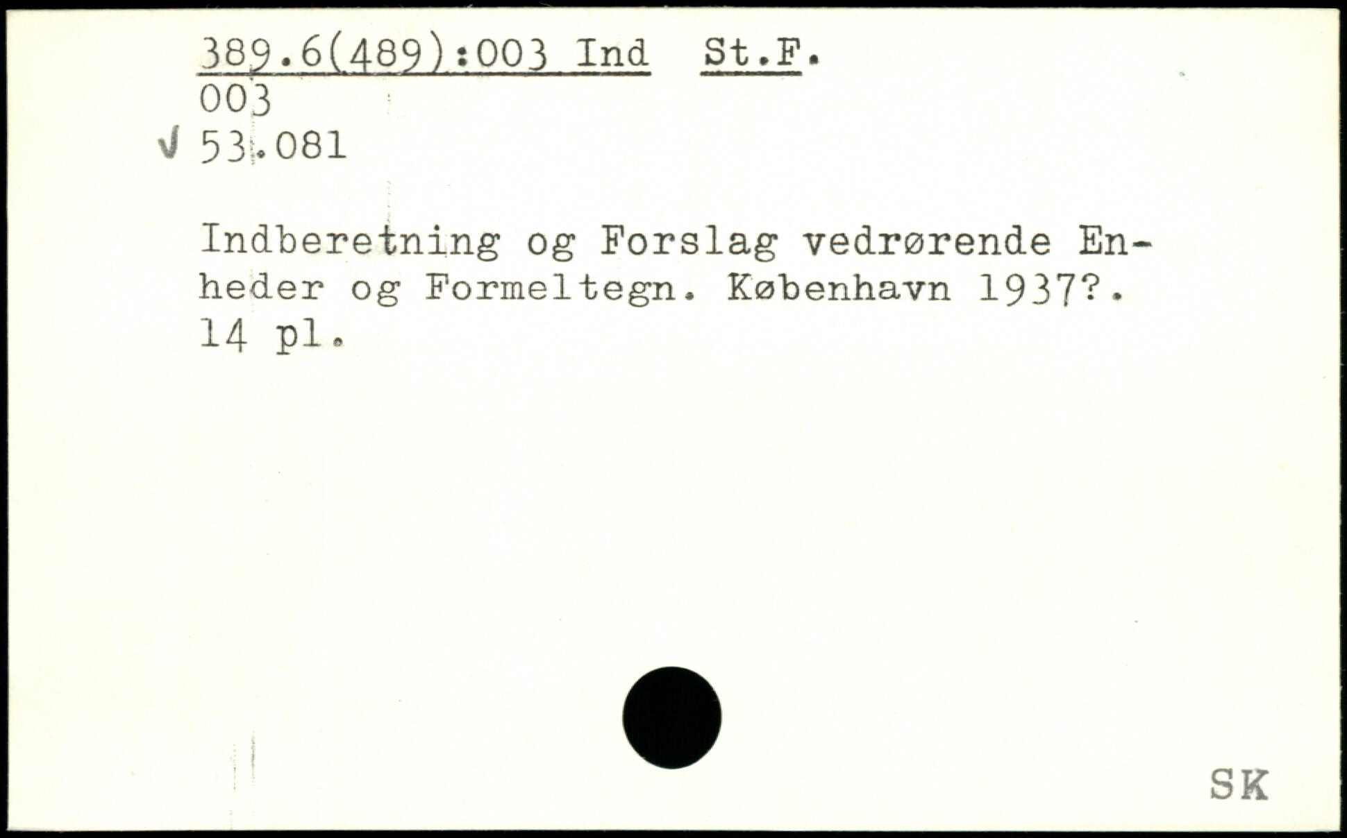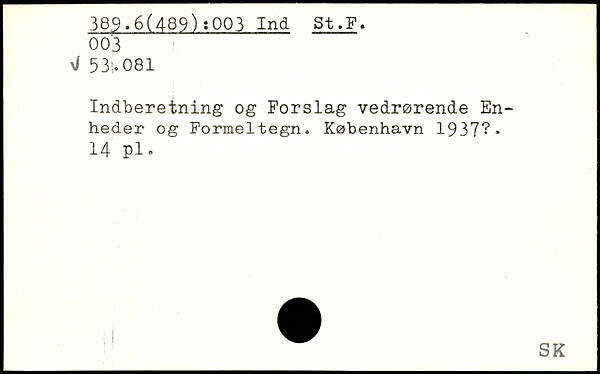 Indberetning og Forslag vedrørende Enheder og Formeltegn.