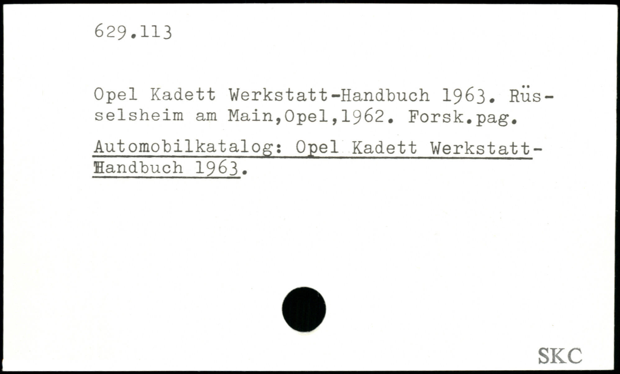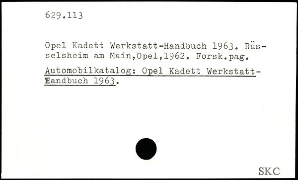 Opel Kadett Werkstatt-Handbuch 1963. RÜs-selsheim am