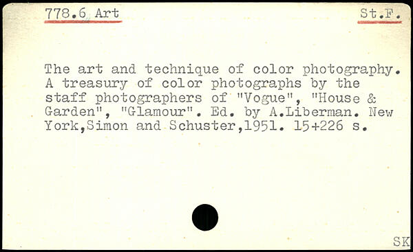 The art and technique of color photography, A treasury of color photographs by the staff photographers of ”Vogue", "House & Garden", "Glamour", Ed, by A