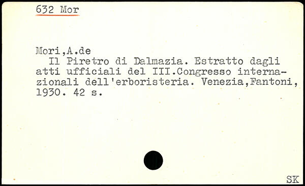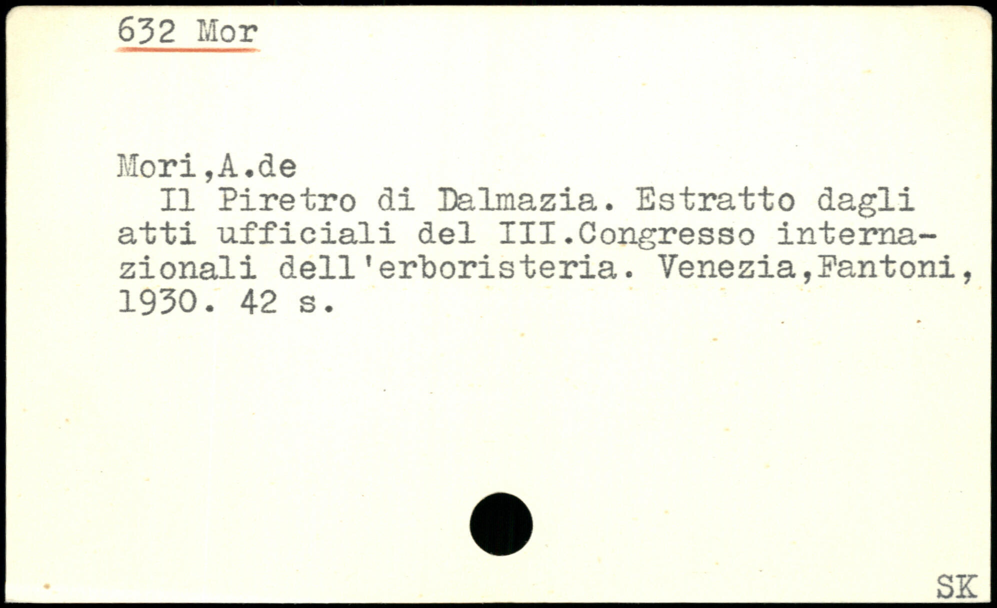 Il Piretro di Dalmazia. Estratto dagli atti ufficiali del III.Congresso interna-zionali dell'erboristeria.