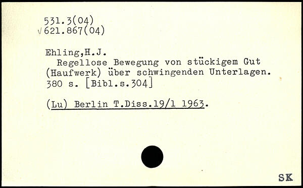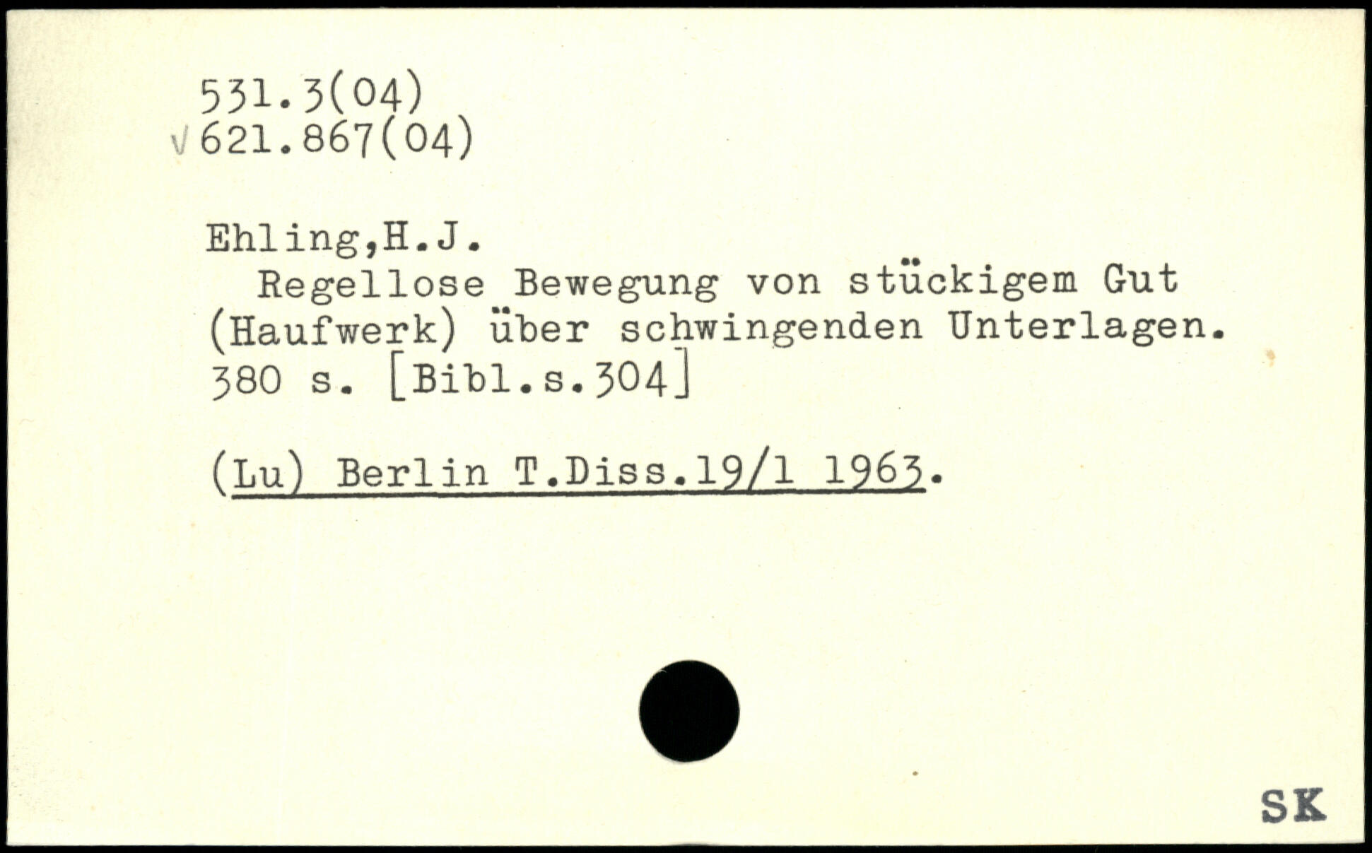Regellose Bewegung von stückigem Gut (Haufwerk) über schwingenden Unterlagen.